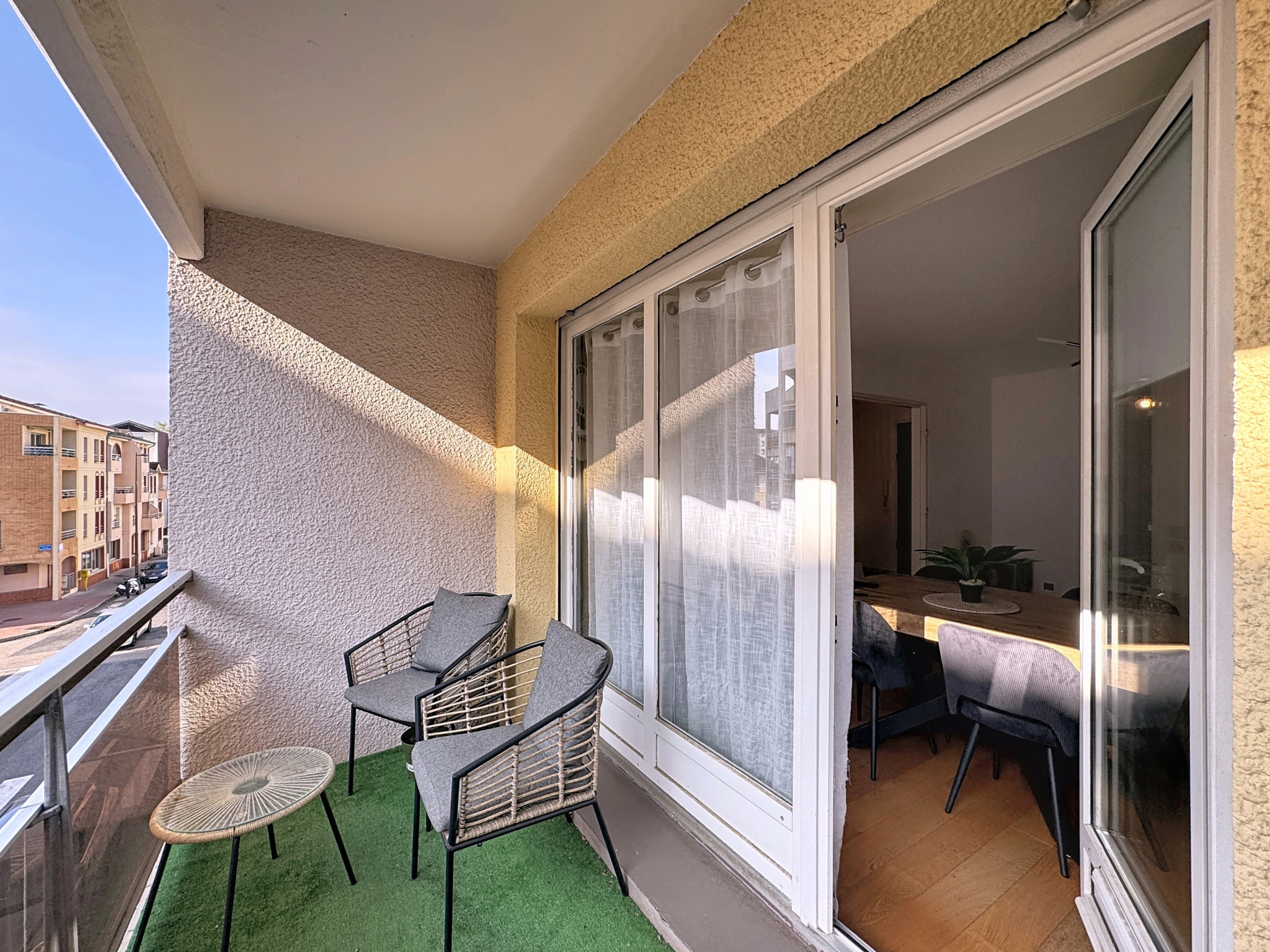 Situé à deux pas du parc Sainte Marie, découvrez votre futur cocon chaleureux comprenant une entrée avec placard, une grande pièce à vivre avec accès balcon, une cuisine équipée, une chambre, une salle de bains, et WC séparés.