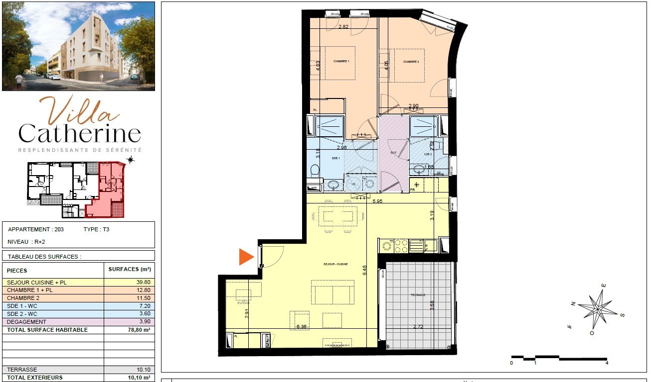 Prestations personnalisables avec 2 salles d'eau faïencées, clim réversible, cuisine aménagée, carrelage grand format.