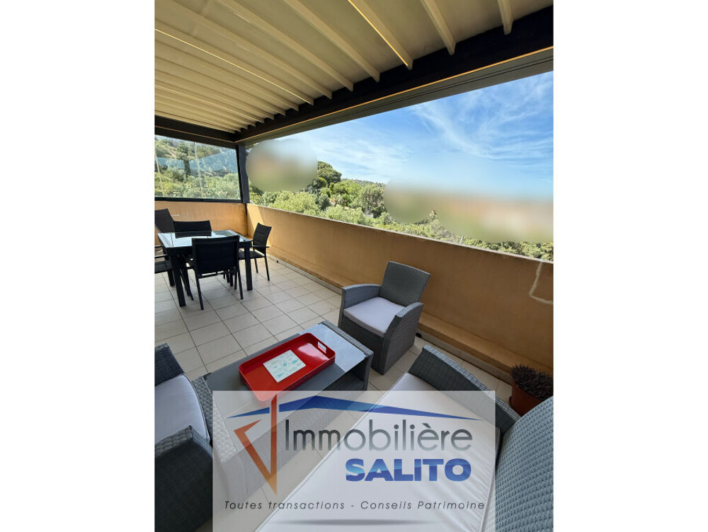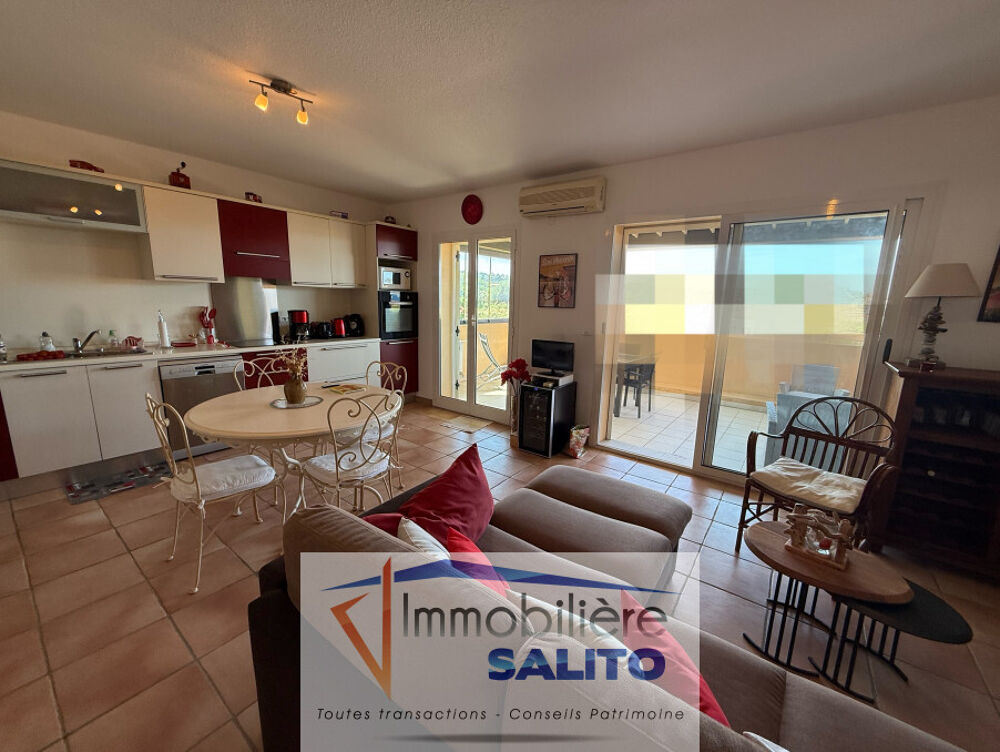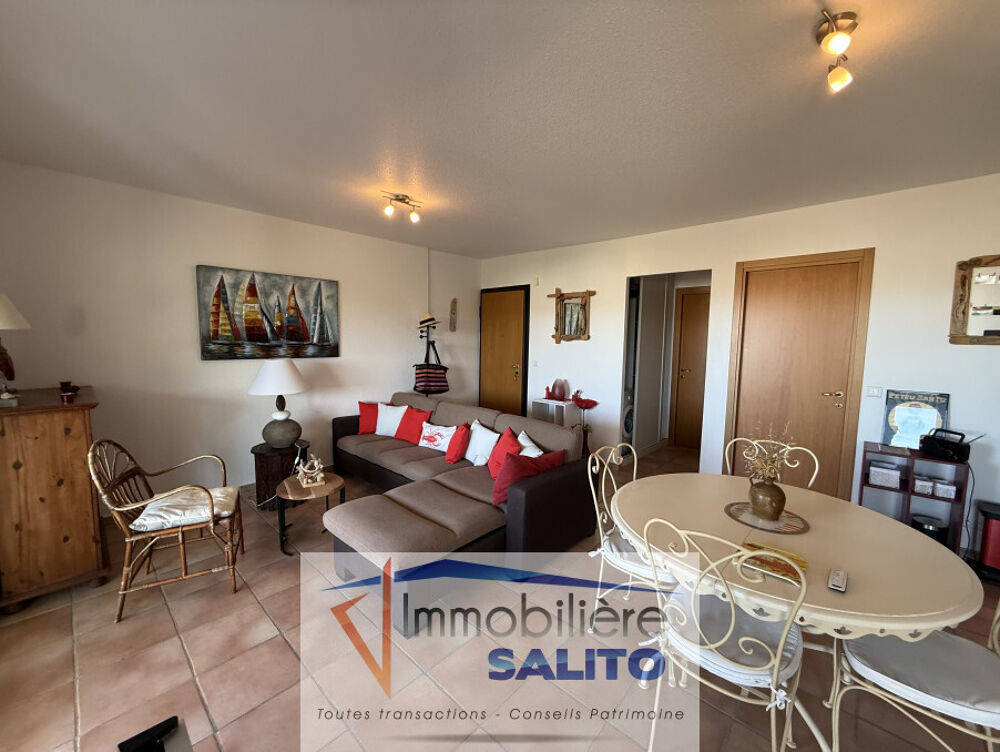 T2 VUE MER -Au 2e étage d' une résidence privée située au calme, appartement type 2 de 46 m² climatisé comprenant séjour ouvert sur cuisine équipée, dégagement avec placard, une chambre avec placard, salle de bains/wc.