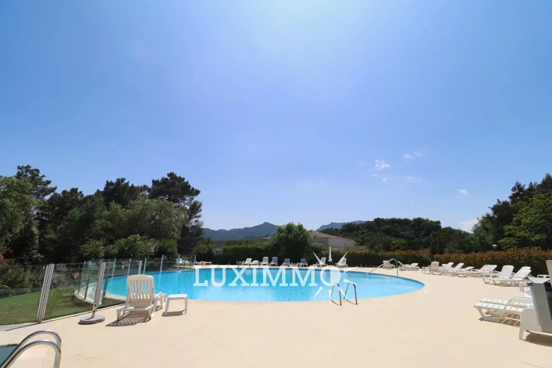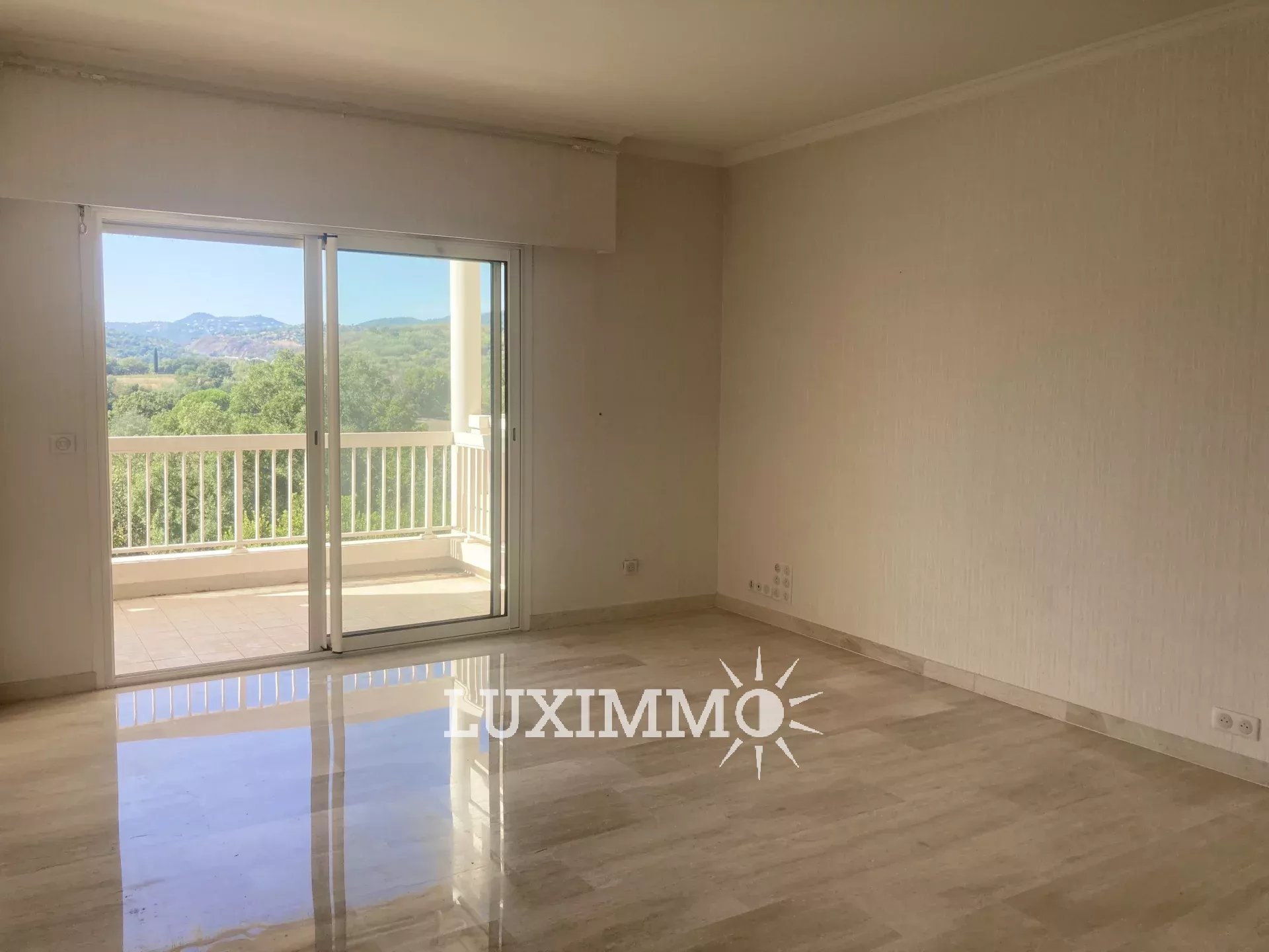 Il comprend une entrée, 1 séjour ouvert sur une terrasse exposée au Sud/Ouest offrant une vue dominante sur le golf et les collines de l'Estérel, 1 cuisine indépendante équipée, 2 chambres, 2 salles de douches et toilettes, 1 toilette indépendant, 1 garage et 1 cave avec un accès direct à l'appartement pour votre confort .