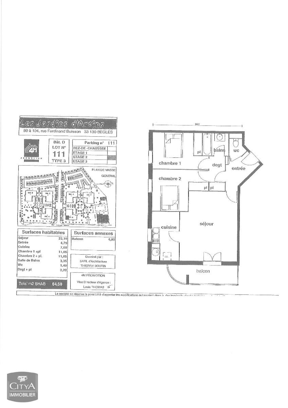 A VENDRE appartement T3 (64 m²) à Bègles, avec balcon et place de parking. - Agréable appartement T3 avec balcon, idéalement situé dans un quartier paisible de Bègles, proche de la gare de Bègles. Il vient d'être entièrement repeint (murs et plafonds). Ce bien de 64 m² vous offre un cadre de vie agréable et fonctionnel, parfait pour une petite famille ou un couple en quête de confort. Vous serez séduit par la luminosité de cet appartement grâce à son orientation ouest. L'appartement dispose d'un salon spacieux, d'une cuisine séparée pouvant être ouverte, de deux chambres confortables, d'une salle de bain et de wc séparés. Vous bénéficierez également d'une place de parking Les ++ : Garage à vélos, gardien d'immeuble N'attendez plus pour découvrir ce bien qui allie confort, fonctionnalité et convivialité. Cet appartement est une belle opportunité à ne pas manquer !. Le bien est soumis au statut de la copropriété , la copropriété comporte 186 lots , la quote-part budget prévisionnel (dépenses courantes) est de 919,00 euros/an. Le prix du bien net vendeur est de 178 000,00 euros plus 6,74% TTC d'honoraires charge acquéreur soit un prix total de 190 000,00 euros. Vous pouvez consulter les barèmes d'honoraires à l'adresse suivante : . Montant estimé des dépenses annuelles d'énergie pour un usage standard : entre 780 et 1 100 euros. Prix moyens des énergies indexés en 2023. Les informations sur les risques auxquels ce bien est exposé sont disponibles sur le site Géorisques : https://www.georisques.gouv.fr