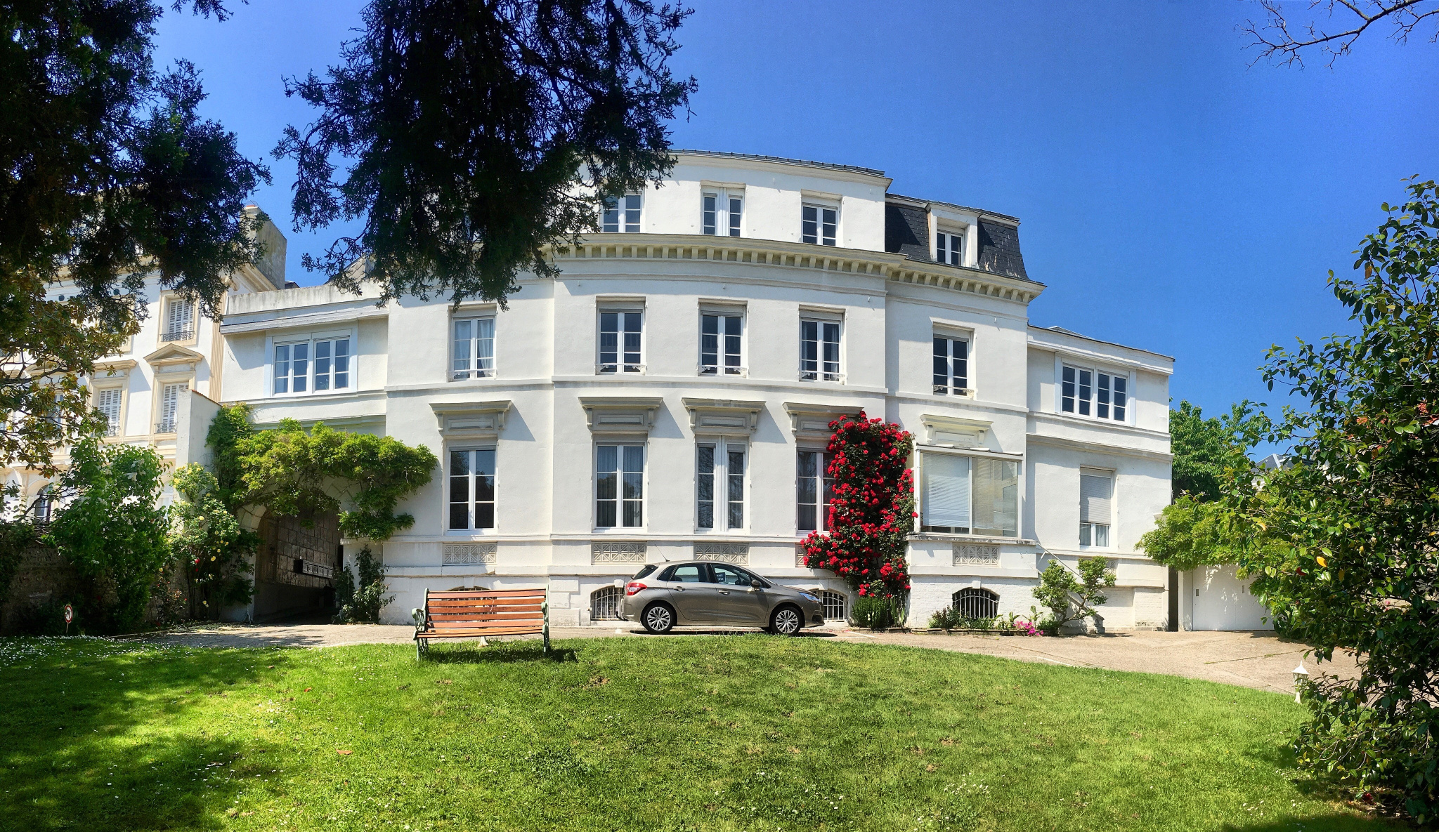 Au sein d'un petite copropriété, dans une Maison de maitre avec jardin, divisée en 5 appartements. Appartement comprenant entrée/couloir avec dressing, cuisine aménagée et équipée de 12m2, salle/salon de 21m2, exposition plein SUD avec vue sur le Jardin et l'Hotel de ville. Salle de douche avec wc, 2 chambres.