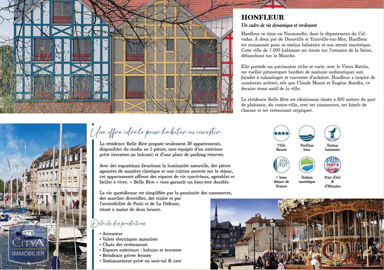 HONFLEUR/CENTRE VILLE/PROGRAMME NEUF - Votre cabinet Citya Immobilier Côte d'Albâtre vous propose l'opportunité de vous installer dans le Calvados!!! Situé à 800 mètres du port de Honfleur, de la station balnéaire, commerces, restaurants, marché... et à proximité de Deauville et Trouville sur Mer, un appartement au rez de chaussée comprenant une entrée, une cuisine aménagée et un séjour donnant accès à un balcon de 5.01m², une salle de douche avec un WC, deux chambres. Une place de stationnement en sous-sol. Une cave. Choix personnalisés pour les revêtements de sol et mur. Respects des normes thermiques RT2012 et les normes acoustiques, assurant une isolation optimale et des économies d'énergie. Prêt à taux zéro si vous êtes primo-accédant!!. Le bien est soumis au statut de la copropriété , la copropriété comporte 82 lots. Honoraires à la charge du vendeur. Les informations sur les risques auxquels ce bien est exposé sont disponibles sur le site Géorisques : https://www.georisques.gouv.fr