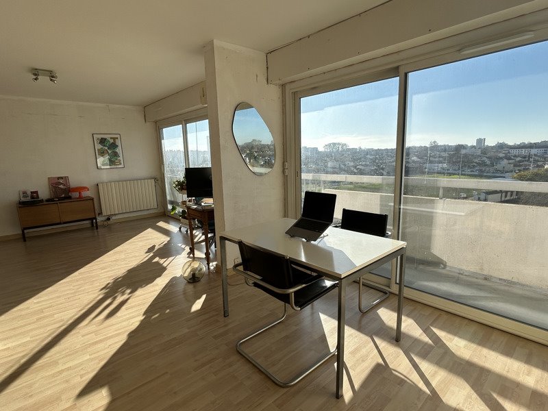 Lumineux appartement de plus de 90 m² composé d'une belle entrée, salon séjour double, cuisine fermée équipée, cellier, wc, salle de bains, 2 grandes chambres, balcon sans vis-à-vis.
