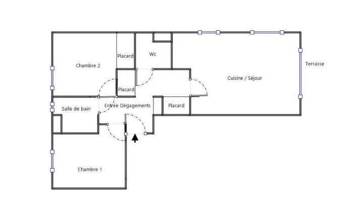 Il se compose d'une entrée avec rangements, d'un agréable séjour avec cuisine ouverte, de deux chambres spacieuses avec placards, d'une salle de bain avec baignoire et de toilettes séparées.