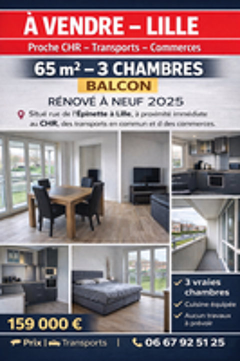Description T3 à Saint andre lez lille