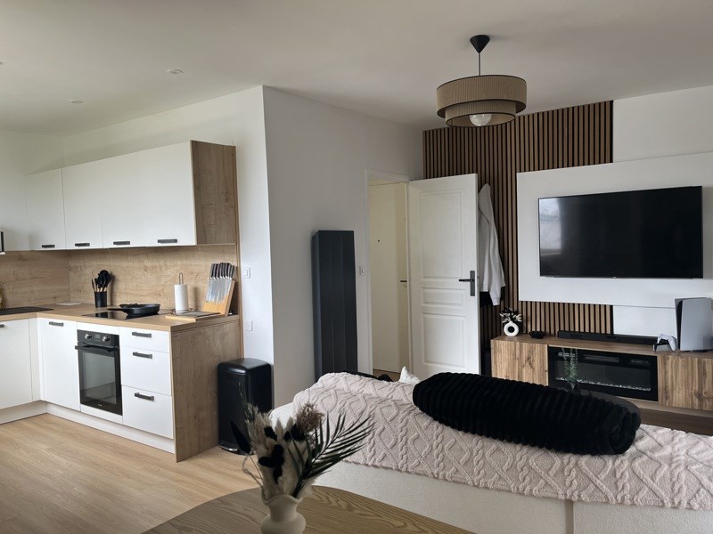 Dans un petit ensemble résidentiel, proche du parc Parilly, des commerces et du Métro, Appartement T2 sans aucun travaux comprenant un salon avec cuisine aménagée , une chambre et une salle d'eau.