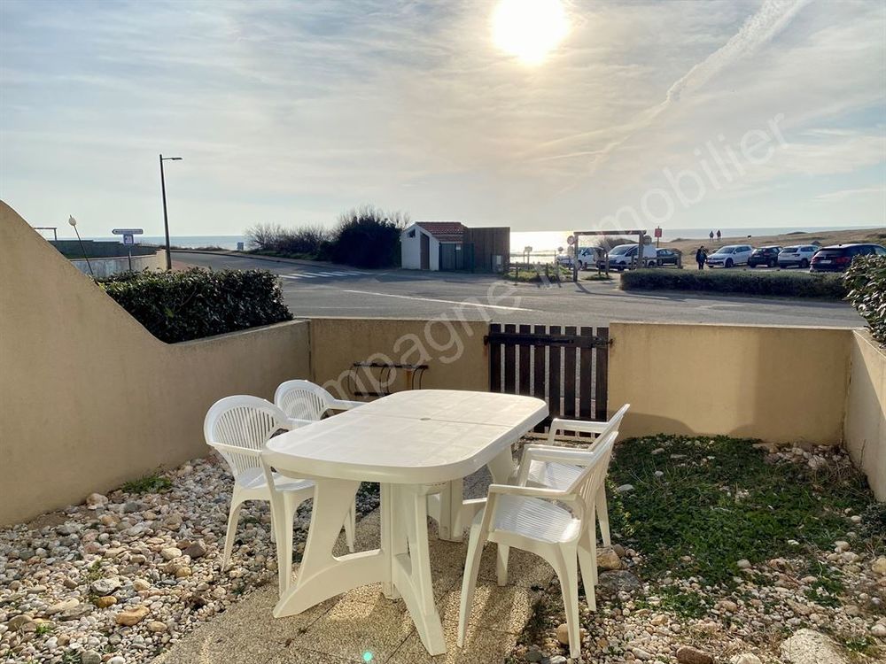 RARE. Jolie vue mer pour cet appartement rez-de-chaussée de Type 2 avec jardinet privatif situé à proximité du spot de surf et des dunes de la Sauzaie. Bien tenu, il comprend une entrée, un séjour lumineux avec plan de cuisine aménagé et équipé, une loggia fermée, une chambre, une salle de bains avec wc. Parking privatif. Vendu meublé.