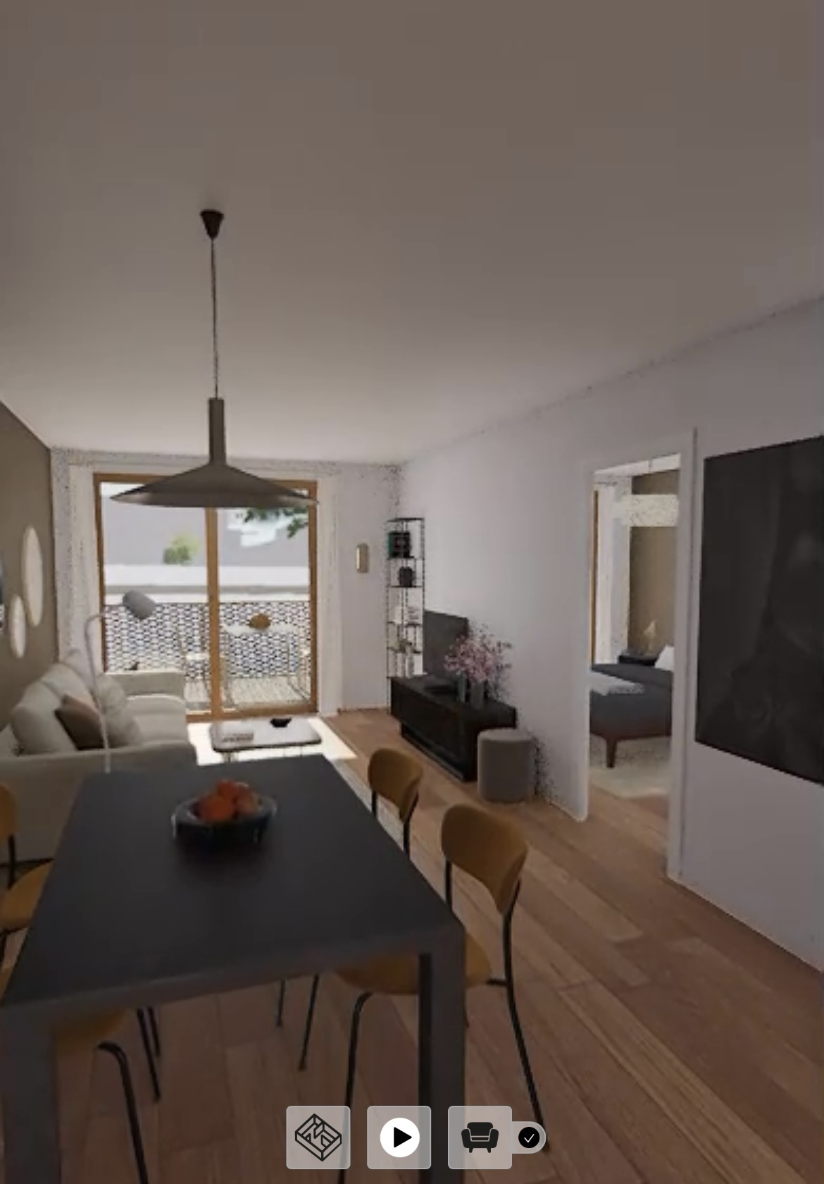 Ce 3 pièces en RDC surélevé de 64m2 dispose d'un balcon de 11m2 sans aucune perte de place