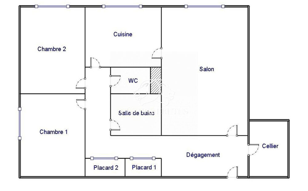 Il se compose d'une entrée avec rangements, d'un séjour lumineux exposé Sud-Ouest, de deux chambres claires, d'une cuisine indépendante, d'un cellier, d'une salle de bains avec baignoire, de WC séparés et de plusieurs placards.