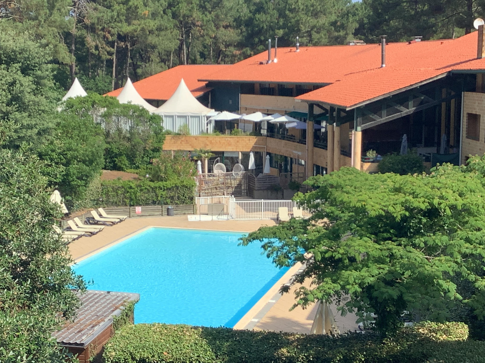 Le domaine où se situe l'appartement est calme et propose plusieurs équipements : Laverie, local vélos commun, piscine collective, hôtel 4 étoiles, restaurant, spa, circuit d'accrobranche.