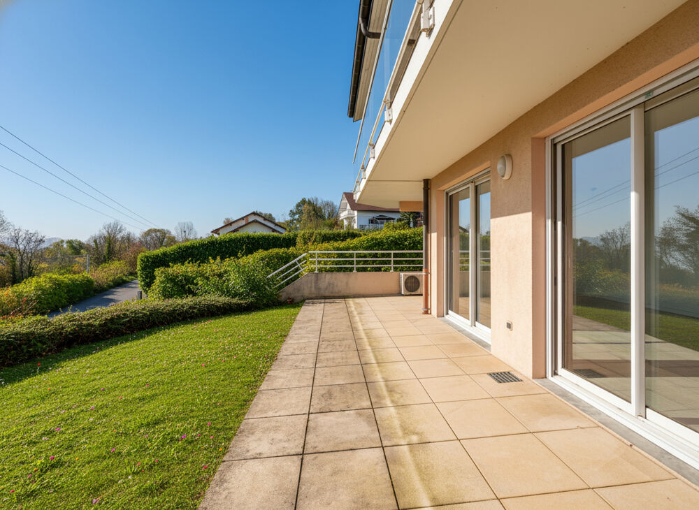 Au coeur d'un secteur calme de Publier, découvrez cet appartement de 85 m² en rez-de-jardin, niché dans une petite copropriété de 10 logements seulement. Ici, la tranquillité est reine? à l'exception d'un invité ponctuel : le train qui passe en contrebas, côté nord. Rien de dramatique : il se manifeste à de très rares occasions, presque comme un voisin discret qui n'ose pas déranger. Dès l'entrée, un dégagement distribue l'ensemble des pièces. Vous y trouverez d'abord une chambre de 13 m² orientée Est, profitant de sa propre salle d'eau avec WC de 2,42 m². Idéal pour préserver l'indépendance de ses occupants... ou pour mettre fin aux négociations interminables sur ?qui passe en premier'. Les deux autres chambres, respectivement de 9,65 m² et 10,72 m², se situent également à proximité d'une seconde salle d'eau avec WC, directement accessible depuis le dégagement. Un espace buanderie de 1,25 m² vient compléter l'ensemble, parfaitement dimensionné pour accueillir machine à laver et rangements. La cuisine séparée de 6 m² permet de préparer les repas en toute tranquillité, tandis que le salon-séjour de 30,55 m², orienté nord/est, s'ouvre par de larges baies vitrées sur une terrasse de 25 m² prolongée par un jardin de 30 m². Une douce vue sur le lac Léman vient parfaire le tableau et donne une agréable sensation d'espace. Pour le côté pratique, l'appartement bénéficie également d'une cave de 4,37 m² ainsi que d'un garage de 13,92 m². Un bien complet, confortable, lumineux? et où même le train a la bonne idée de passer si rarement que vous finirez probablement par oublier son existence. VISITE VIRTUELLE DISPONIBLE SUR NOTRE SITE INTERNET ! Pour tout renseignement, contacter l'agence immobilière laforêt EVIAN-LES-BAINS. Copropriété de 30 lots - dont 10 lots habitation. (Pas de procédure en cours). Charges annuelles : 1119 euros.Etat général : Bon Etat