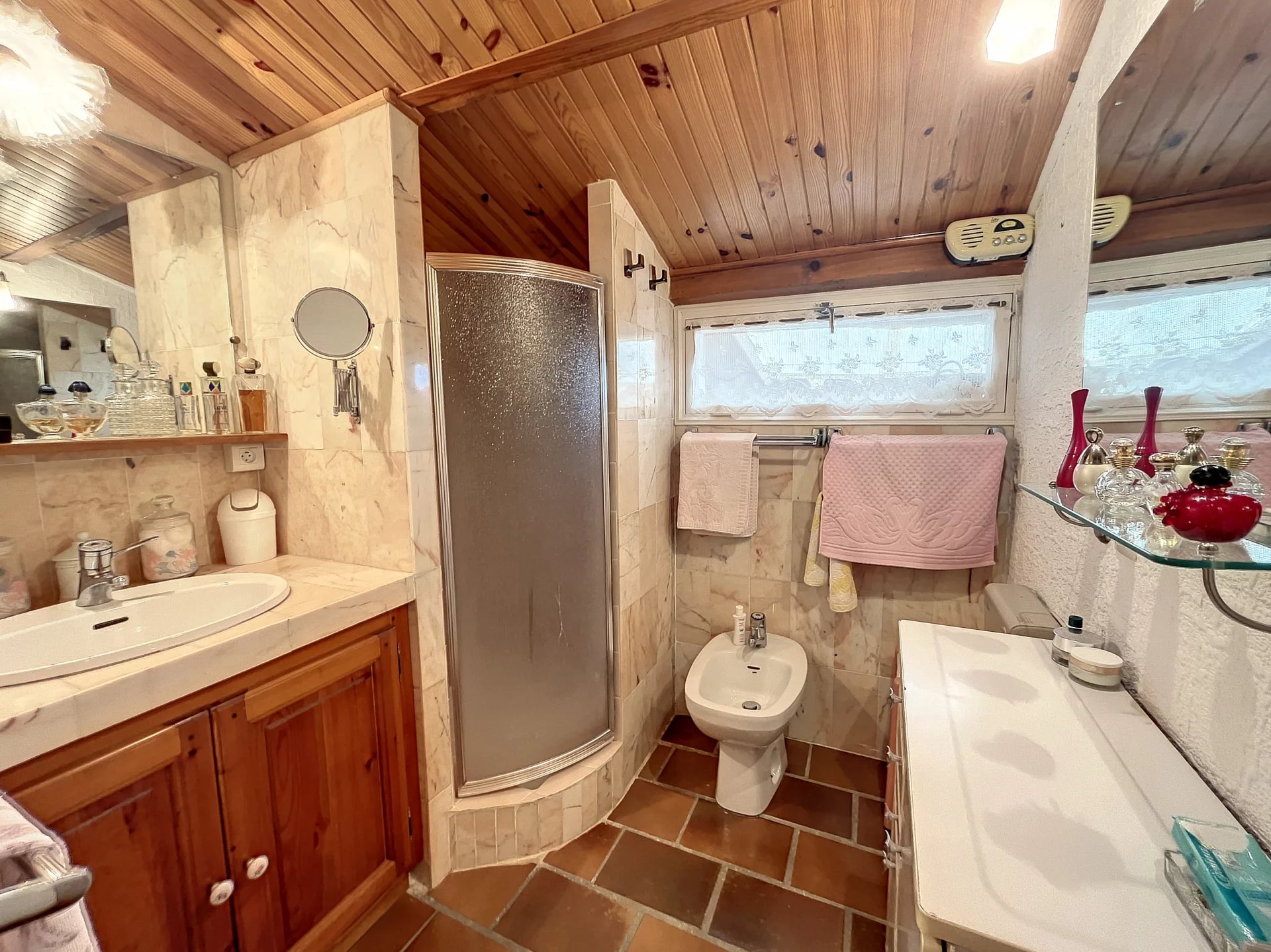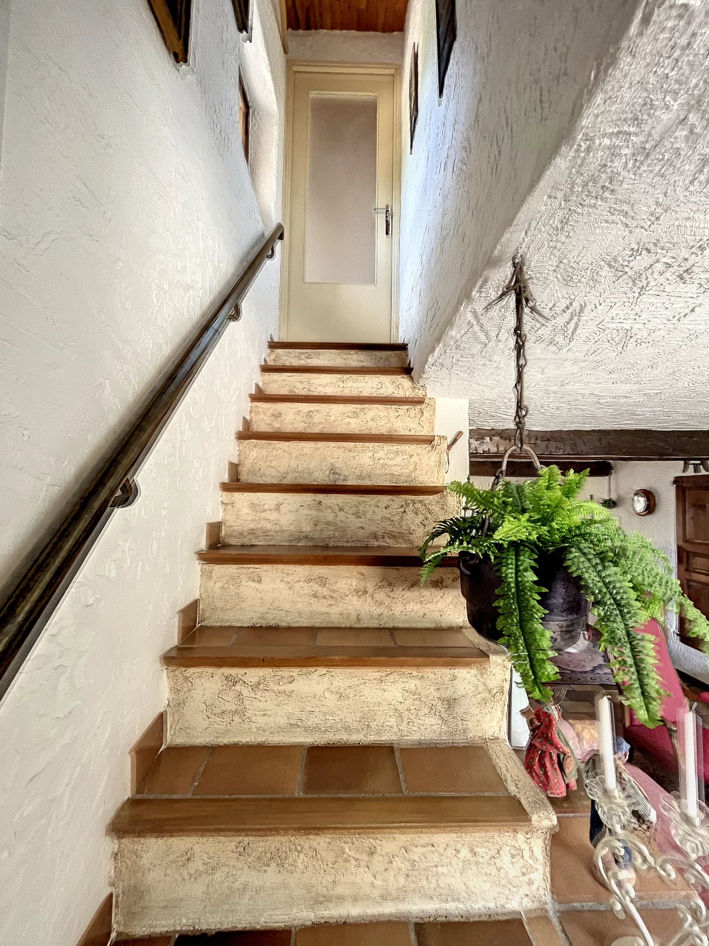 Perché au dernier étage d'une maison de village typique divisée en trois appartements, ce coquet trois-pièces en duplex est une véritable parenthèse d'air pur.