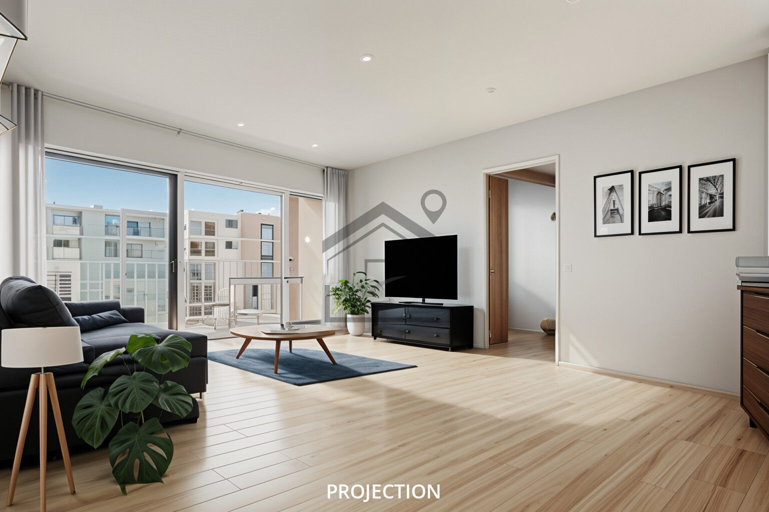 L'appartement est composé d'une entrée, d'une cuisine séparée équipée avec une loggia de 3m², d'un séjour climatisé de 20m², donnant sur le balcon, d'un dégagement menant au coin nuit composé de trois chambres avec rangements, d'une salle d'eau ainsi que d'un WC séparé.