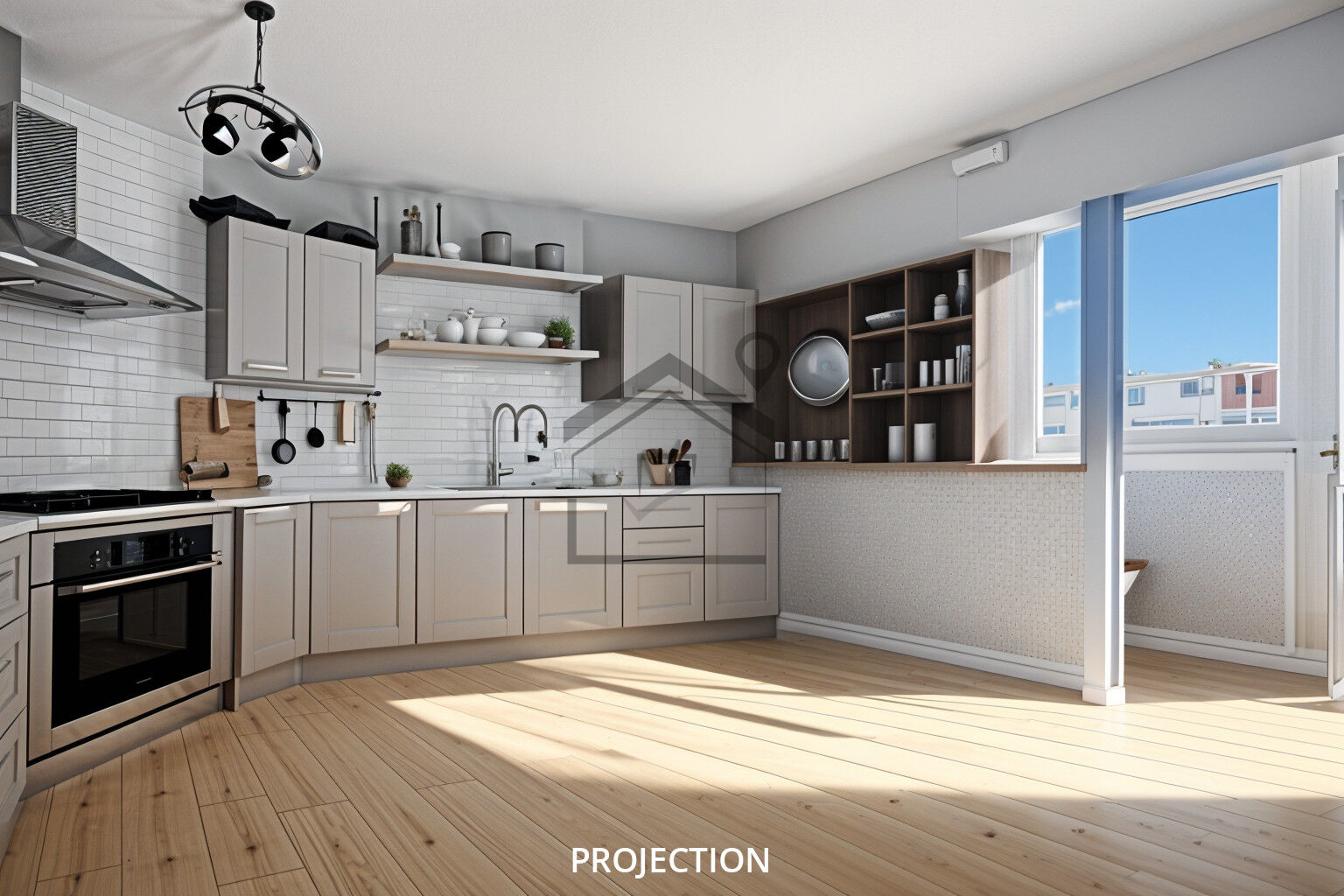 Il est possible de créer une pièce de vie de 30m², en ouvrant la cuisine sur le séjour.