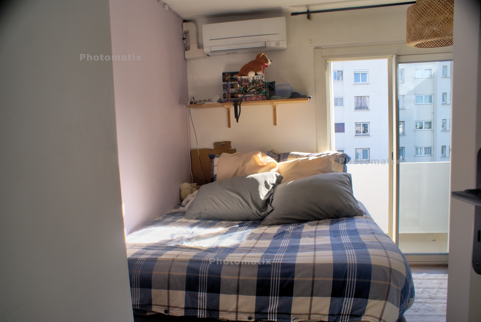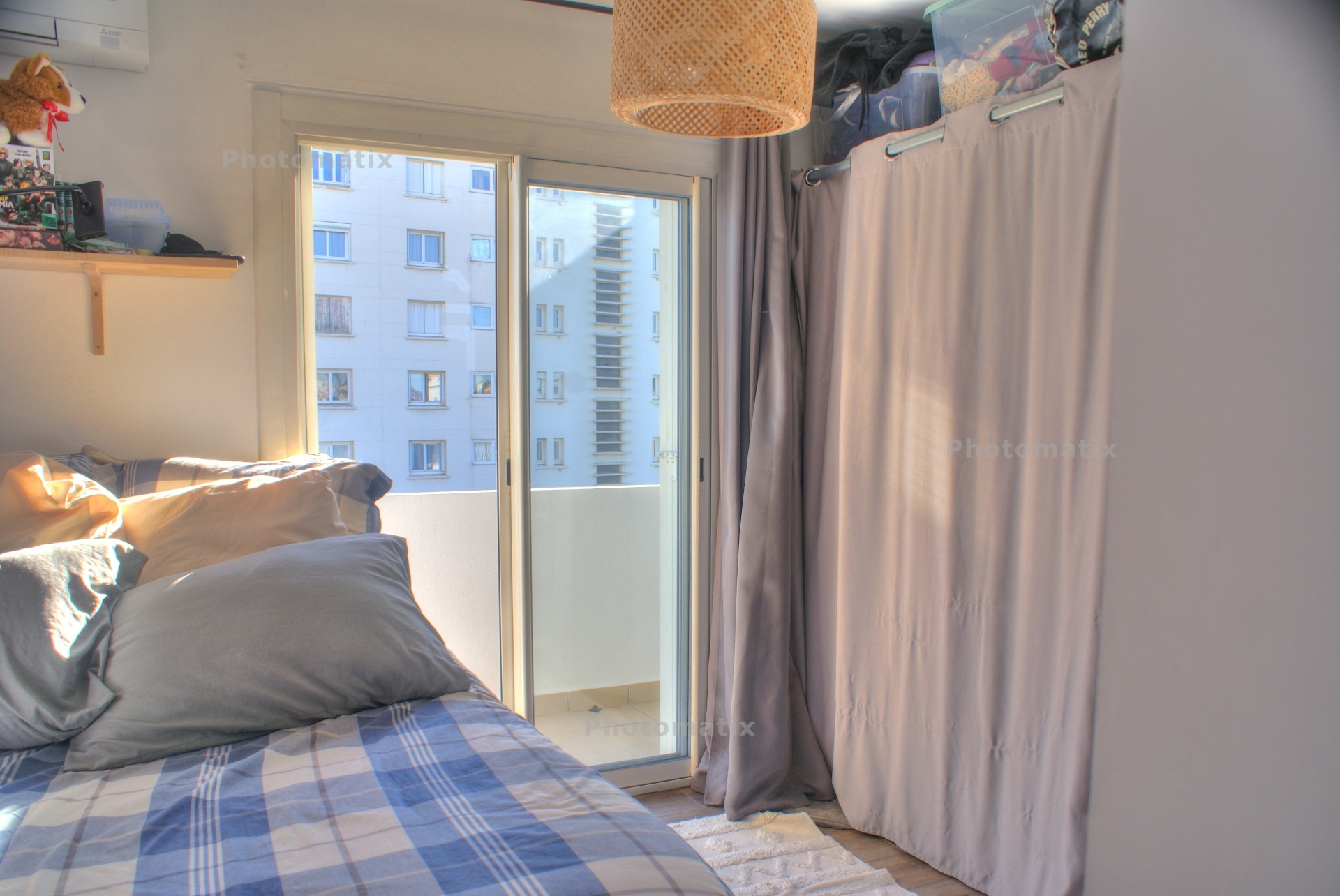 La chambre baigne également dans la lumière et permet aussi l'accès direct sur le balcon.
