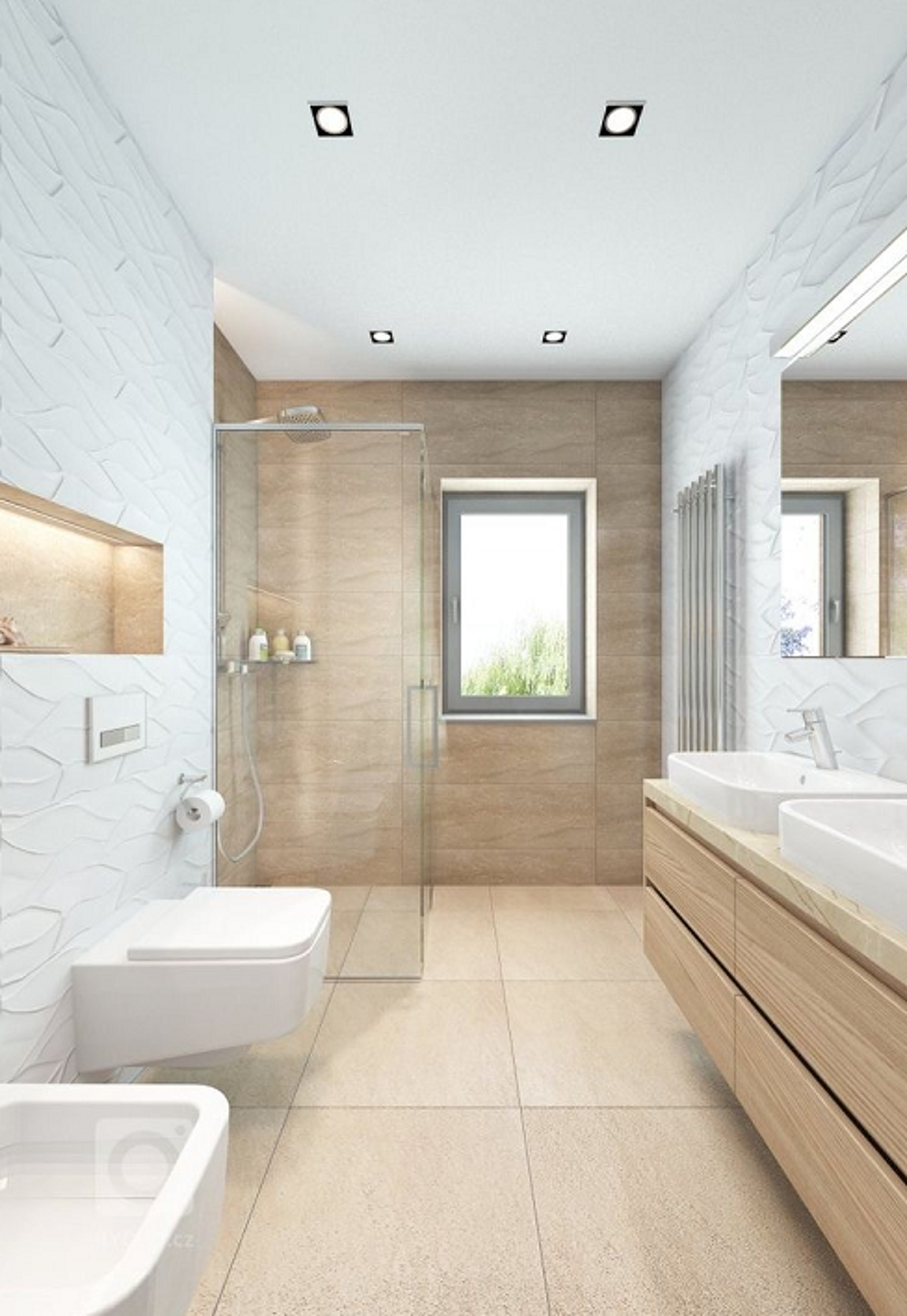 Appartement 3 pièces de 76m², il se compose d'un espace séjour/cuisine de 27m², de deux belles chambres dont une master avec son espace dressing et sa salle d'eau avec WC privative, d'une salle de bains avec double vasque et d'un wc indépendant.