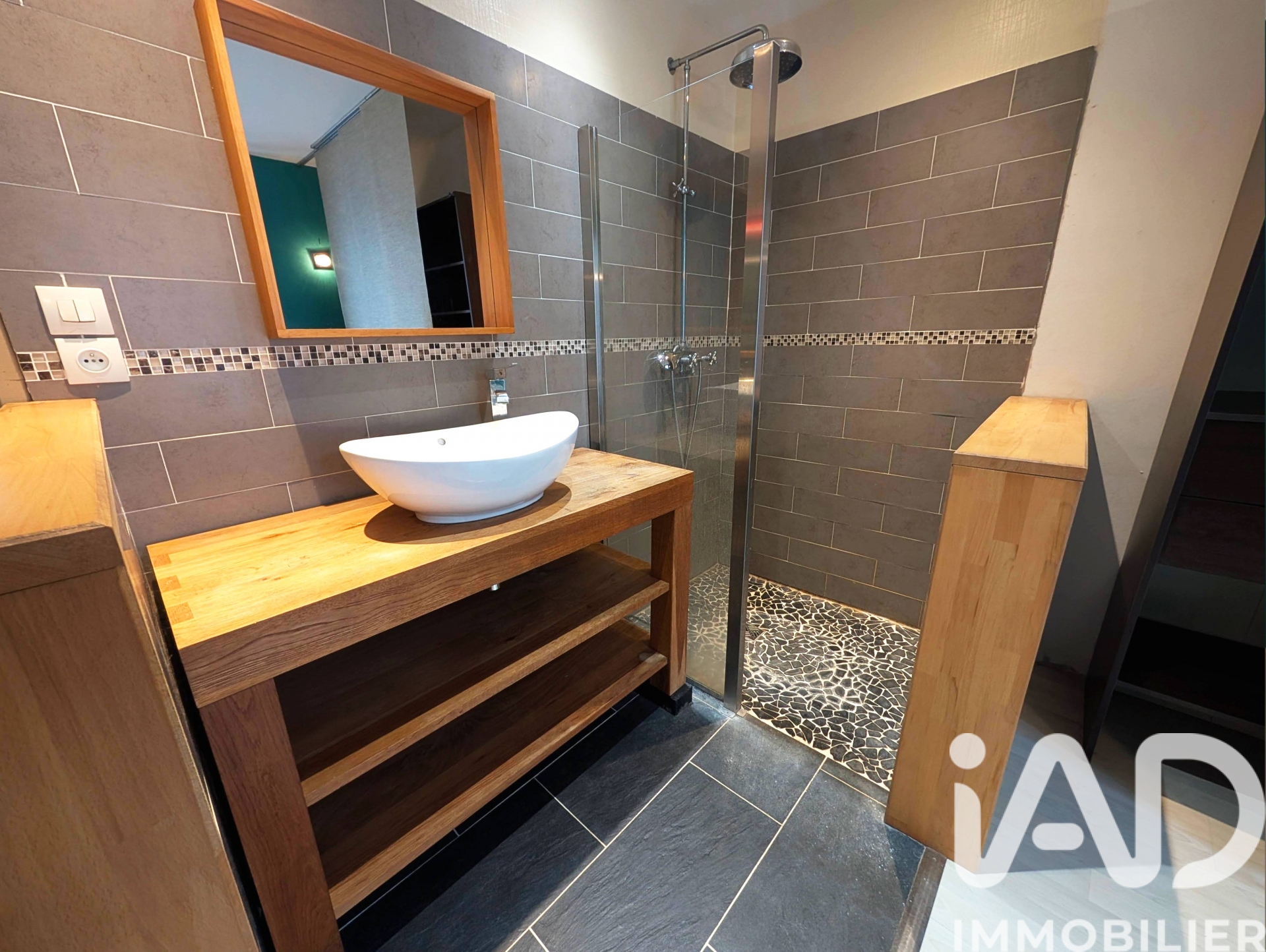 - La salle de bain dispose d'une grande douche à l'italienne et d'une vasque contemporaine.