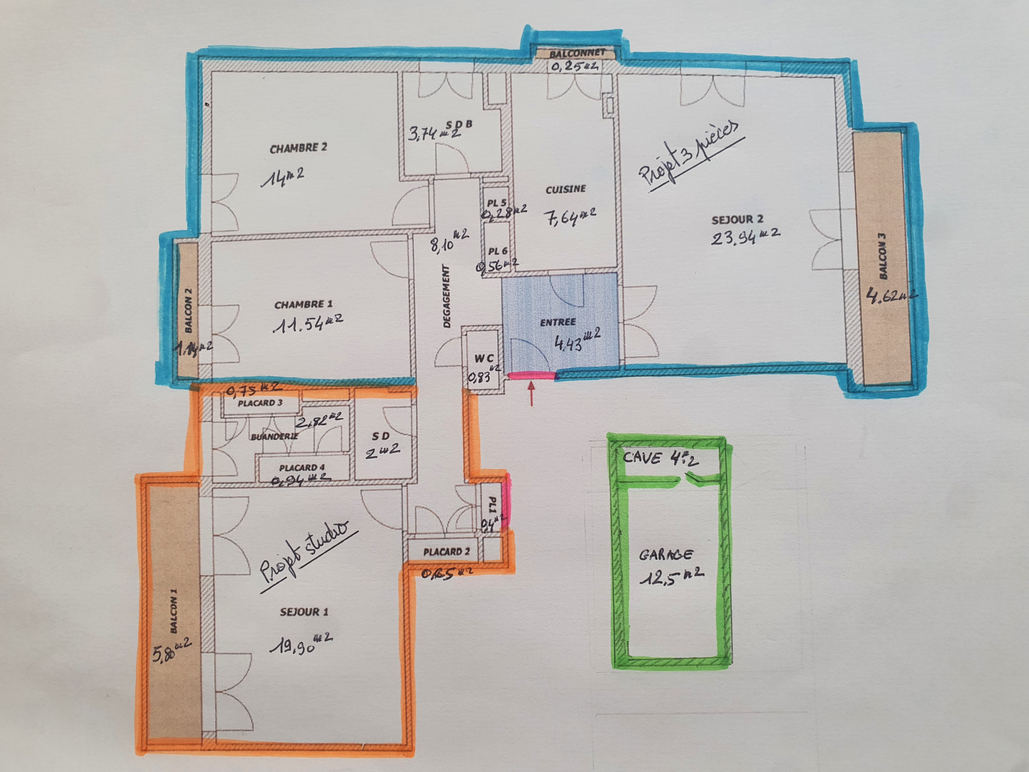 Possibilité d'aménagement : L'appartement, composé de deux lots réunis, peut facilement être transformé en 3 pièces + studio. Des croquis sont disponibles pour visualiser ce projet.