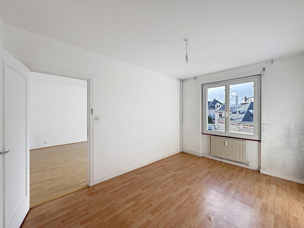Lumineux T3 de 62.80 m² au 4ème étage de l'immeuble avec ascenseur, composé d'une entrée, séjour, cuisine, deux chambres dont une avec balcon, WC et salle de bains.