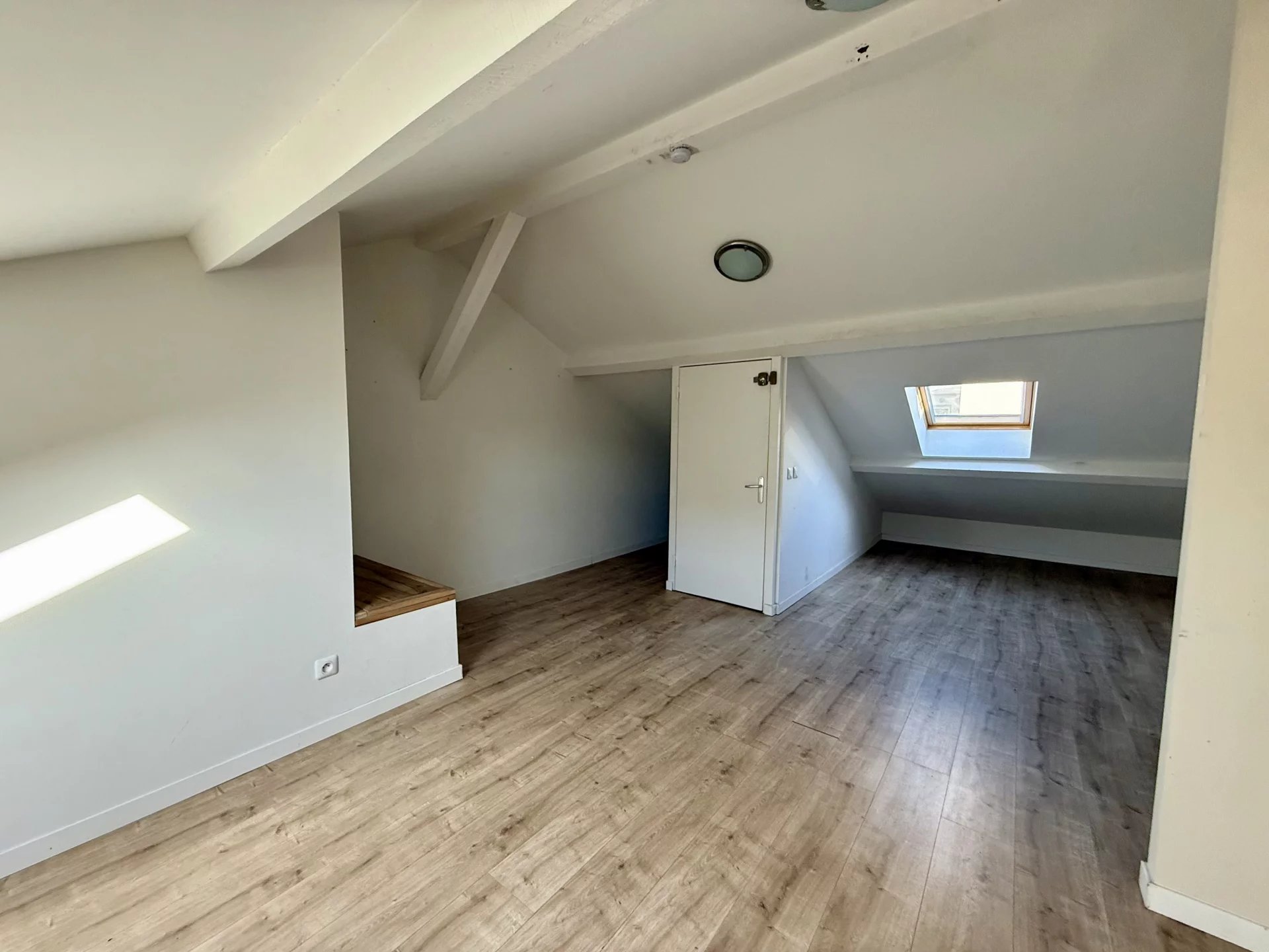À l'étage, un bel espace sous pente vous permet d'aménager selon vos besoins : une seconde chambre, un grand bureau ou encore une salle de jeux/sport.