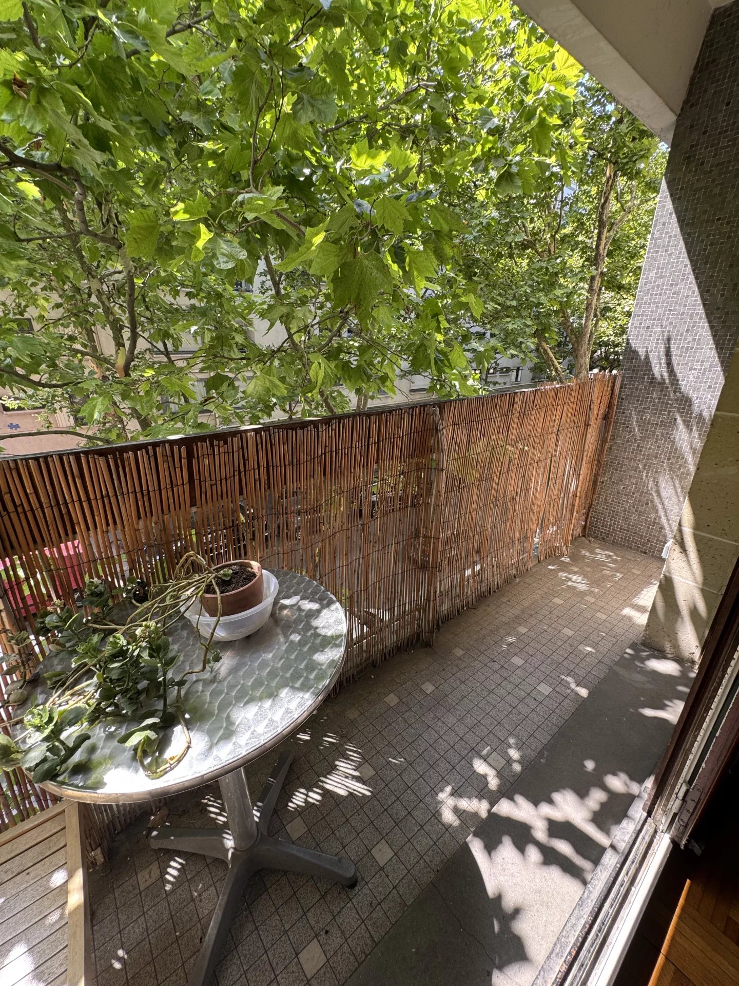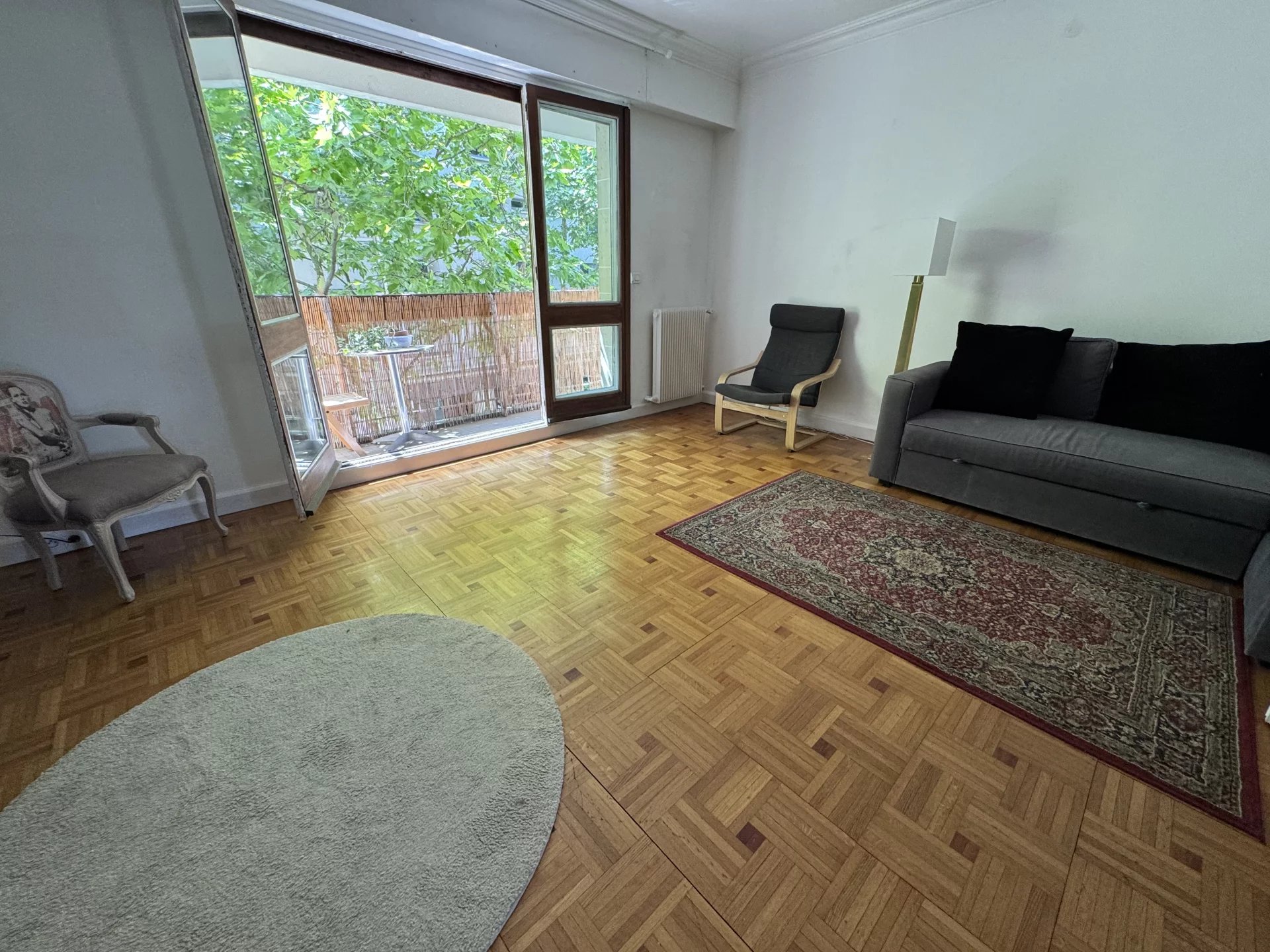 L'appartement mesure 55m² et est composé sur rue d'un grand séjour, une salle de bains, des WC séparés et une chambre coté jardin, sans vis a vis.