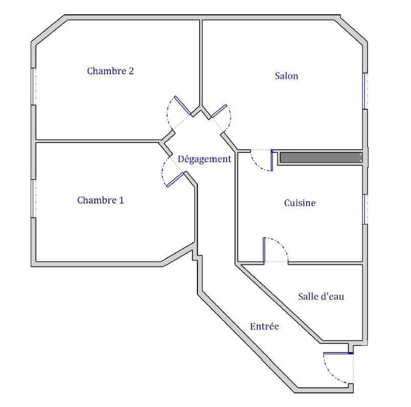 Situé au 4ème étage, il bénéficie d'une belle luminosité avec vue dégagée. Il propose un séjour, une cuisine indépendante, deux chambres, un dégagement et une salle de bains avec wc.