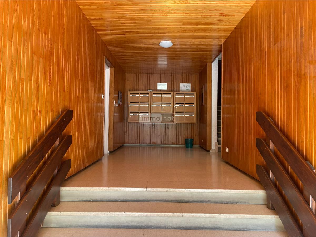 Un appartement de Type 3/4 (possible 3 chambres), situé au rez-de-chaussée surélevé avec vue au sein d''un environnement boisé, comprenant : hall d''entrée, wc indépendant, cuisine ouvrant sur balcon, salon (avec placard) et salle à manger ouvrant également sur le balcon (ancienne chambre), dégagement (avec placard) desservant 2 chambres, buanderie, salle de bains (baignoire).