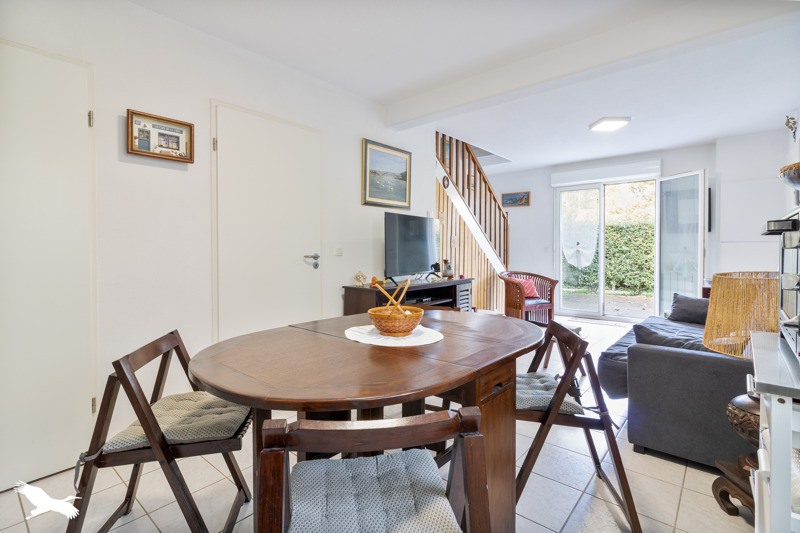 Au sein d'une copropriété calme et entretenue, proche du lac et des plages par la piste cyclable, duplex entièrement meublé de 3 pièces, composé d'une grande pièce de vie avec cuisine équipée, cellier et WC séparés.