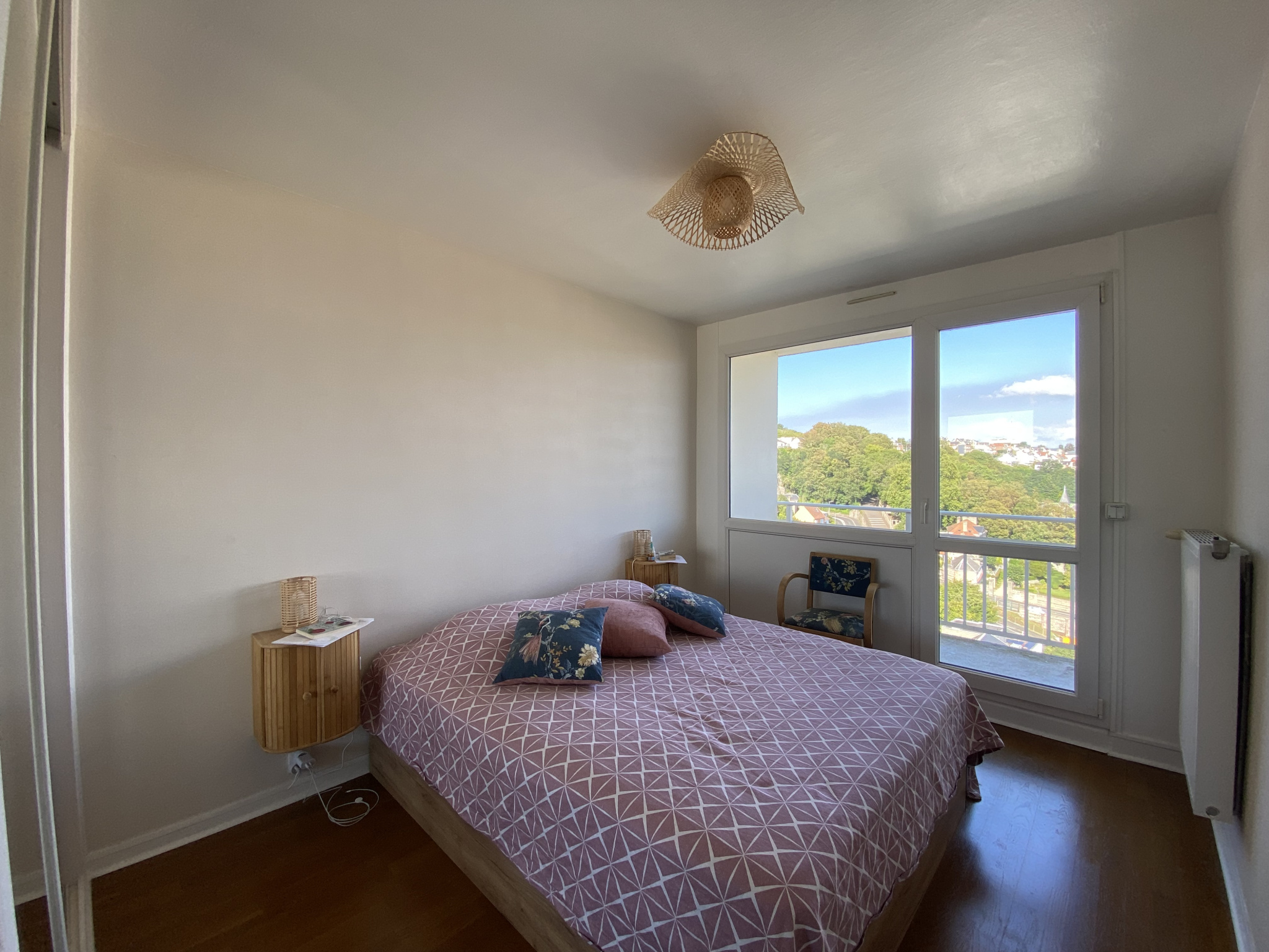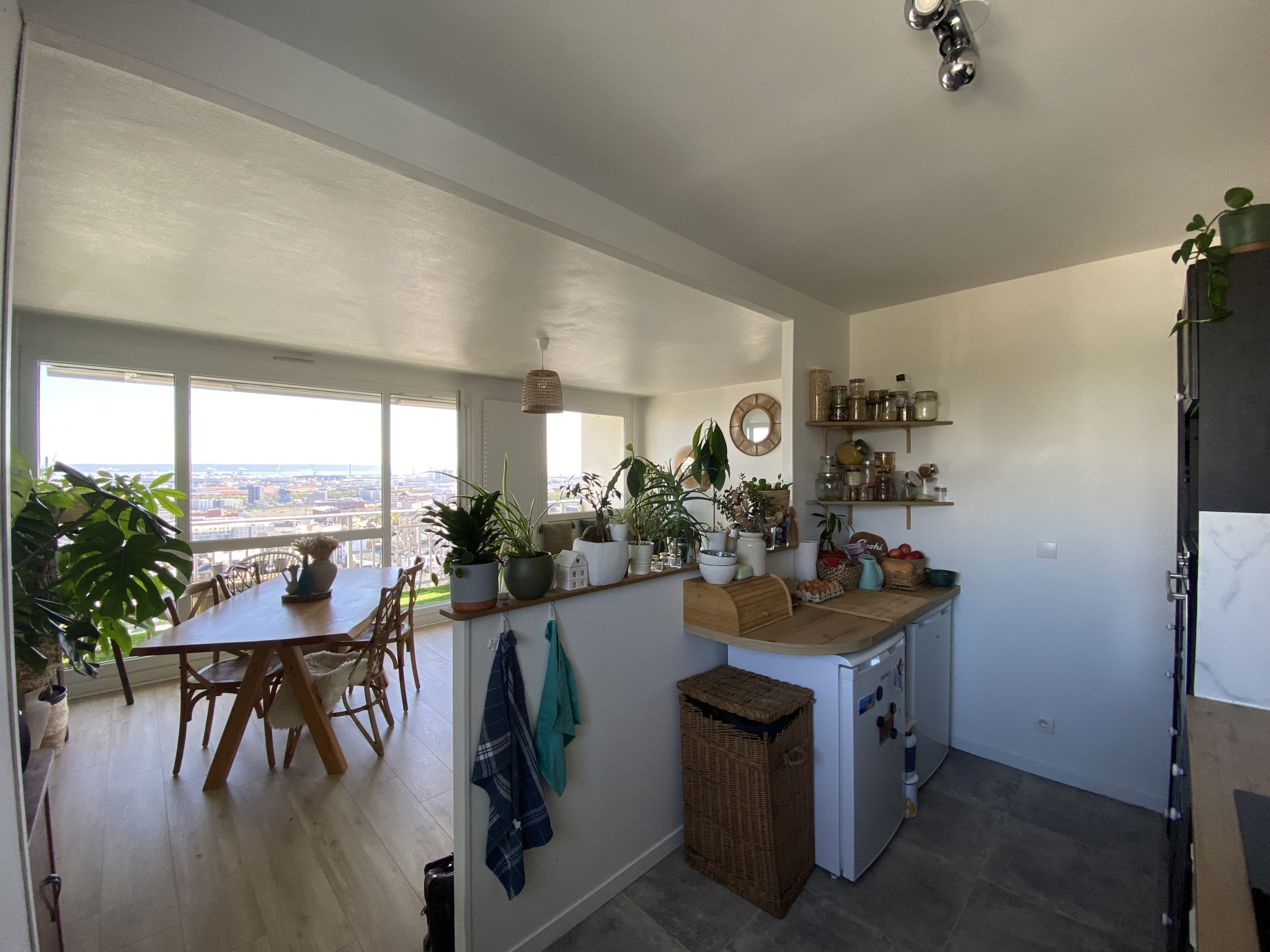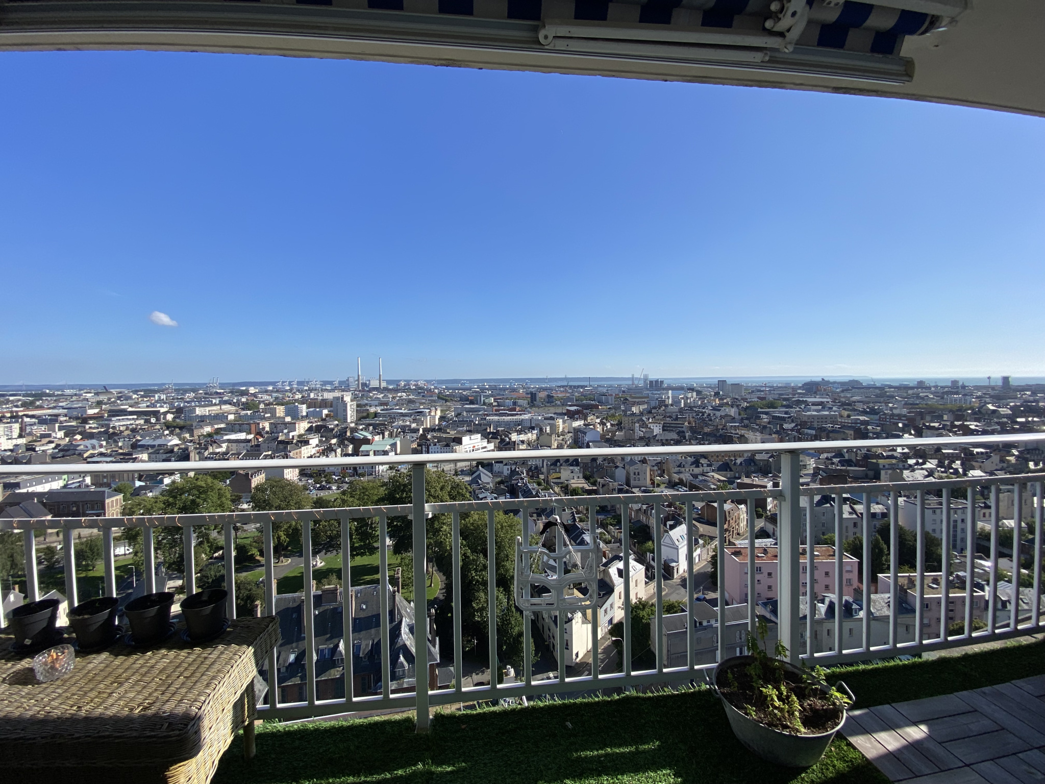 VENDU loué meublé : Résidence Les Horizons, centre ville du Havre, très bel appartement 2 chambres de 64m2, au dernier étage avec ascenseur et vue exceptionnelle sur le Havre plein SUD. Grande entrée avec dressing, pièce de vie de 30m2 avec cuisine semi-ouverte et entièrement équipée. Accès à la terrasse plein SUD. Coté nuit, 2 chambres avec accès terrasse coté est. Salle de douches et wc séparés. Place de parking et Cave. Résidence avec gardien.