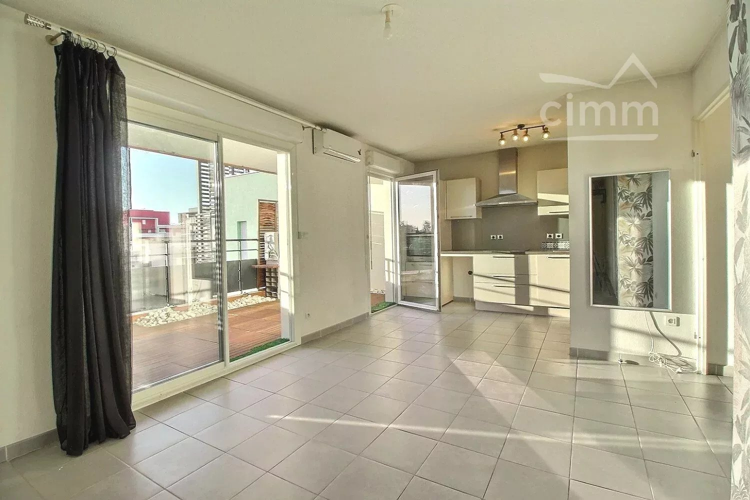 Maison B. vous présente au cinquième et dernier étage avec ascenseur de la résidence VILLA OVALIA construite en 2011, privée et sécurisée, cet appartement traversant et lumineux comprend : une jolie entrée avec rangements menant à un séjour avec cuisine ouverte entièrement équipée et aménagée de 26,29 m2, un dégagement, 2 chambres d'environ 11 et 12 m2 disposant chacune d'un placard intégré, une salle de bains fonctionnelle et un WC séparés. Double accès direct par la pièce de vie à une agréable terrasse de 15 m2 exposée ouest, vue dégagée, garantissant un ensoleillement tout au long de la journée et de beaux couchers de soleil.