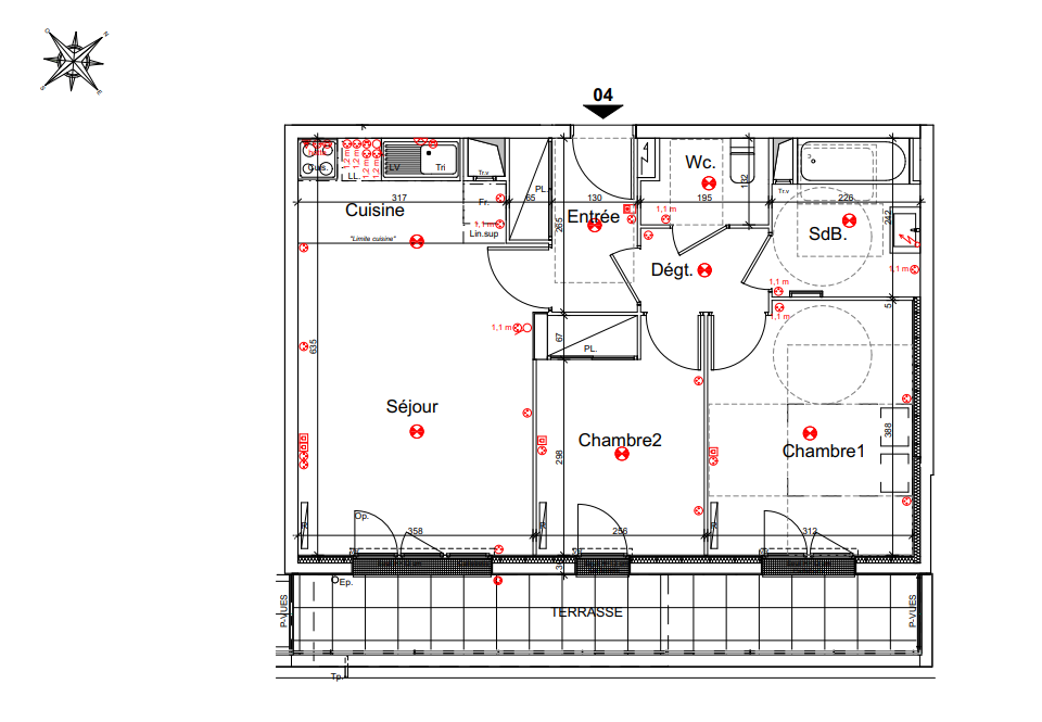 Dans une résidence neuve T3 de 69.09 m2 composé d'une cuisine ouverte sur un séjour, d'une chambre, salle de bain avec WC.