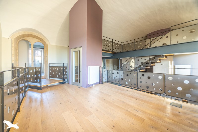 Loft avec ascenseur privatif et terrasse dans un bel environnement fleuri et calme et 3 places de parking privées.