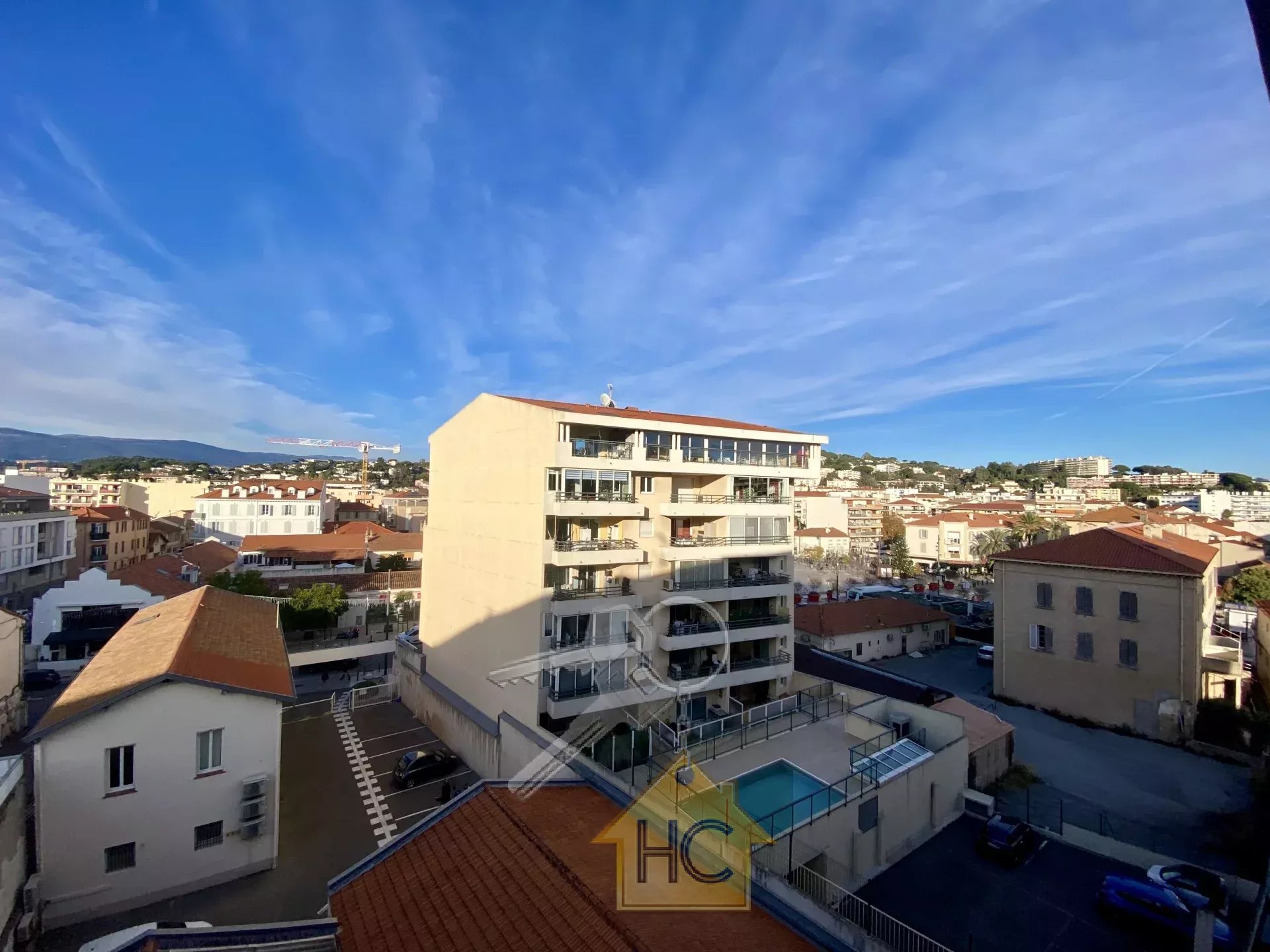 Beau 3 pièces d'environ 45 m2, en centre-ville, en étage élevé avec vue panoramique, vendu loué dans une résidence avec piscine.
