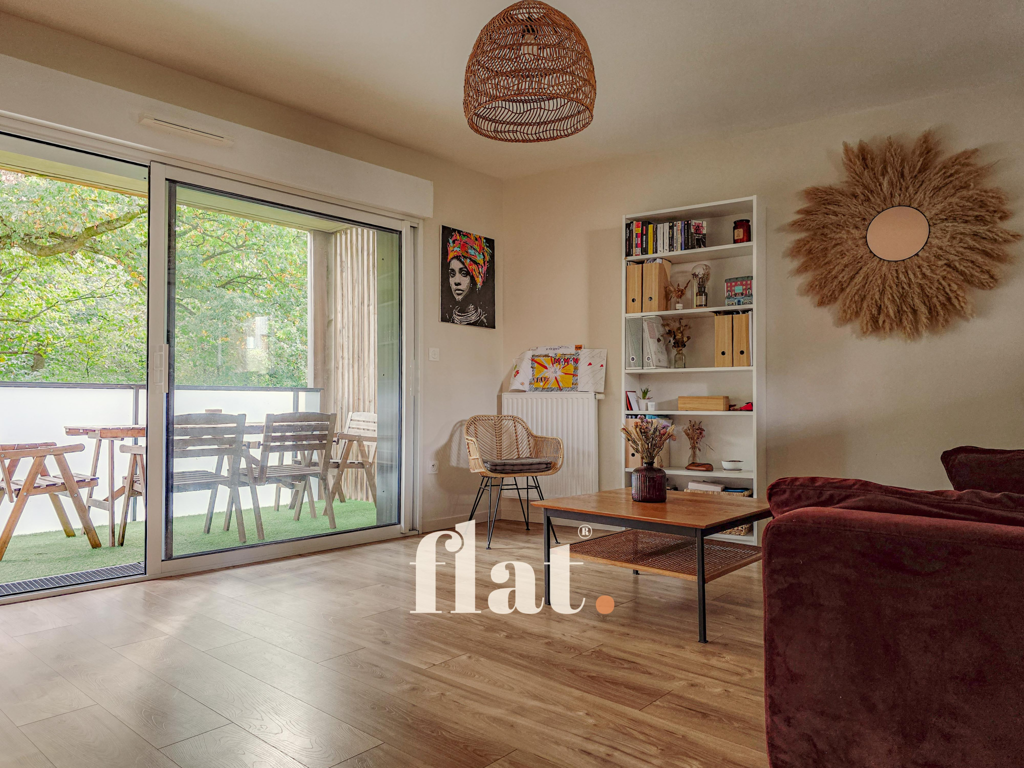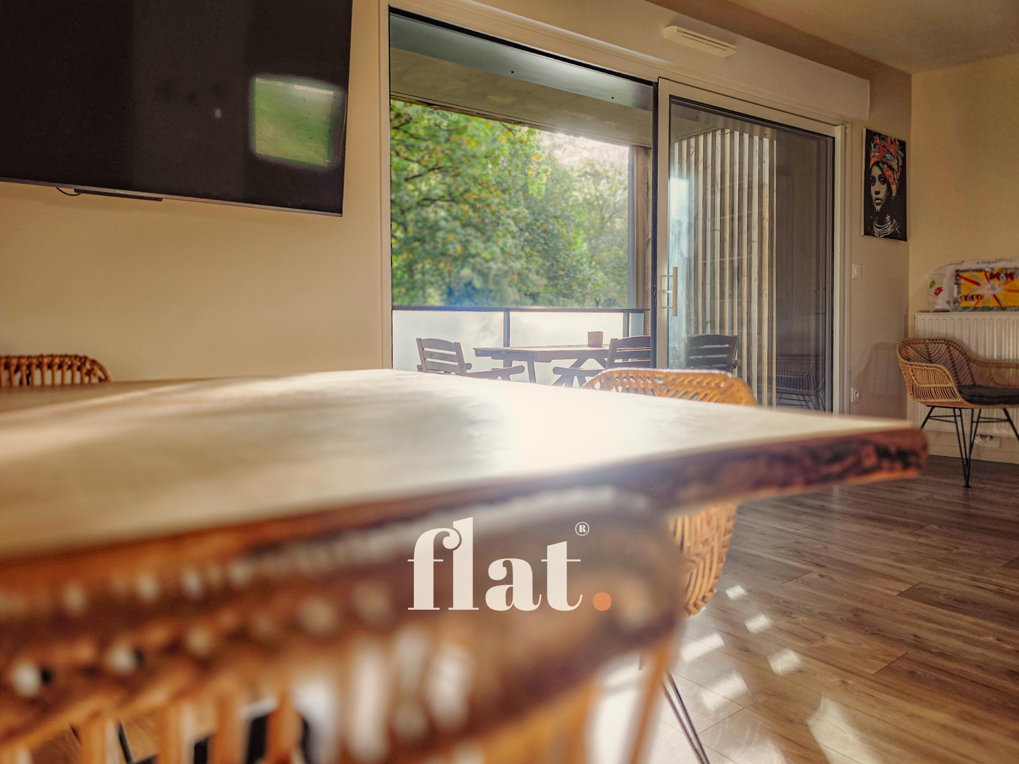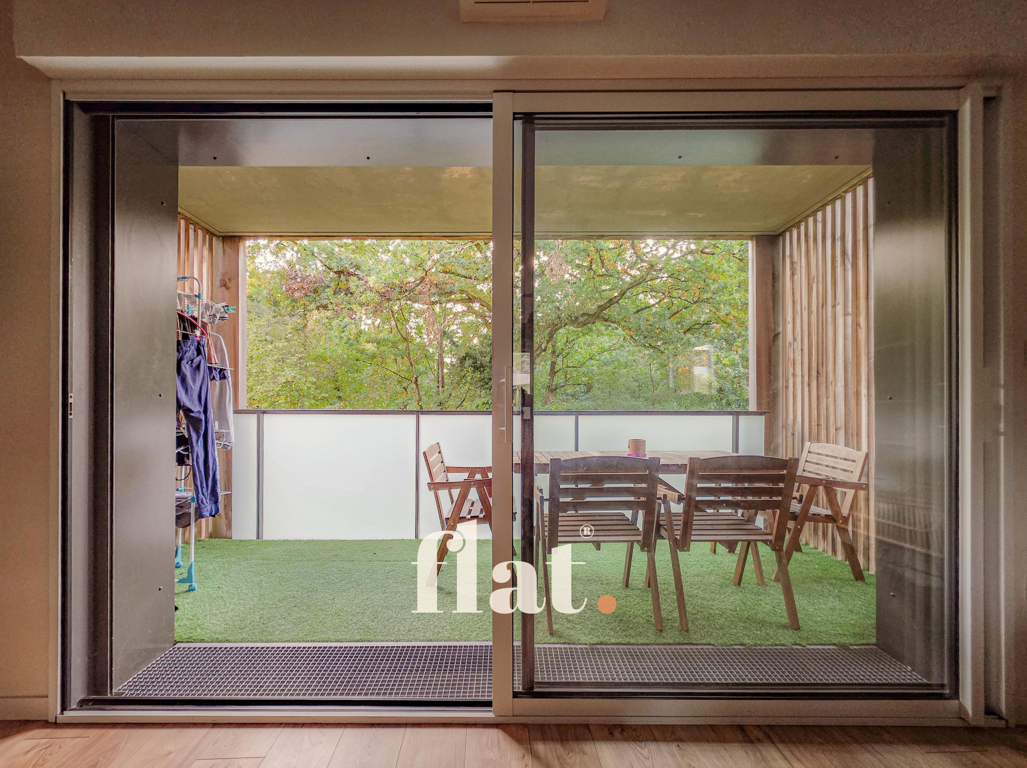- Pièce de vie avec vue sur un parc arboré depuis le balcon/terrasse.