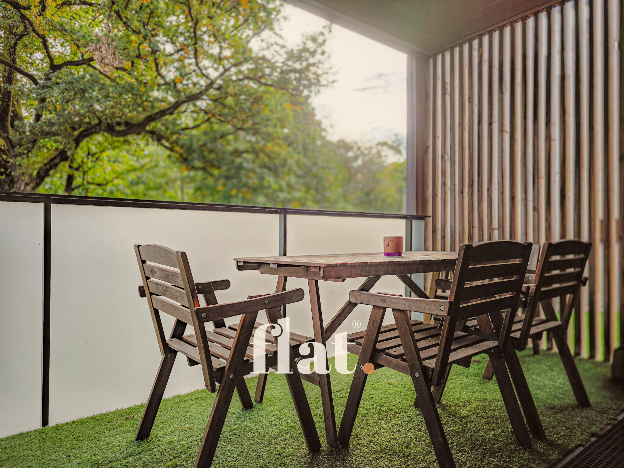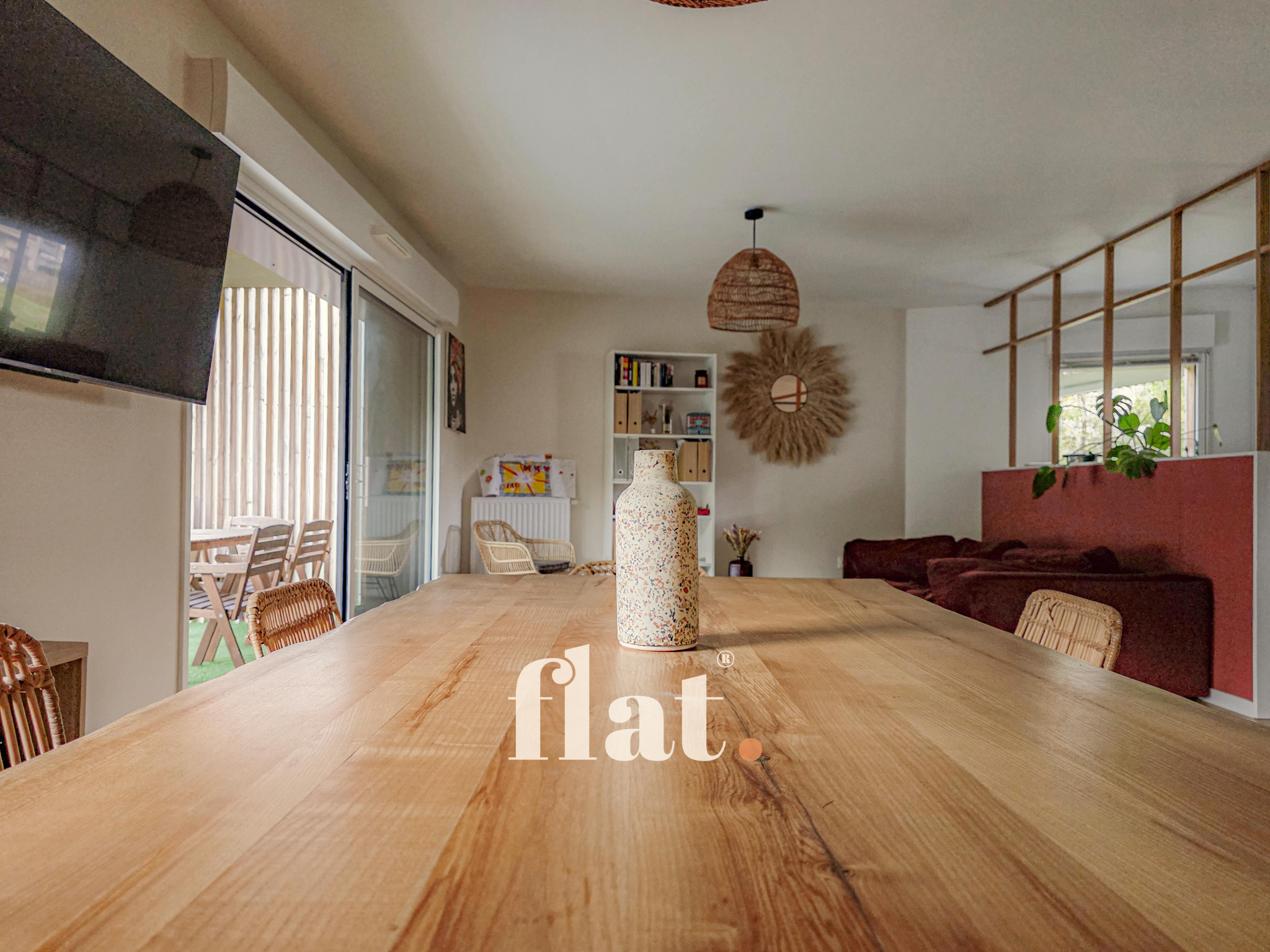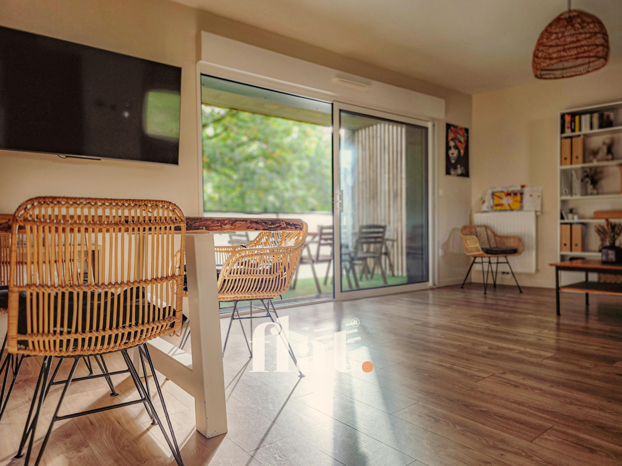 - Pièce de vie avec vue sur un parc arboré depuis le balcon/terrasse.