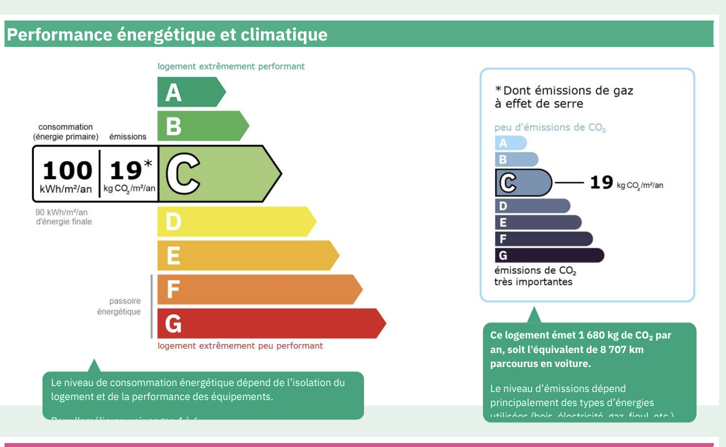 Pour la nouvelle notation (DPE à partir de juillet 2021), c'est la plus mauvaise des deux performances (énergie, climat) qui est retenue.