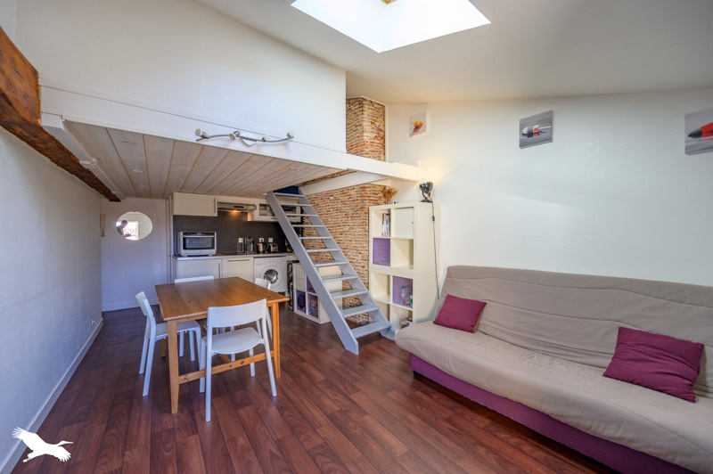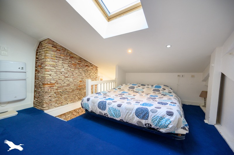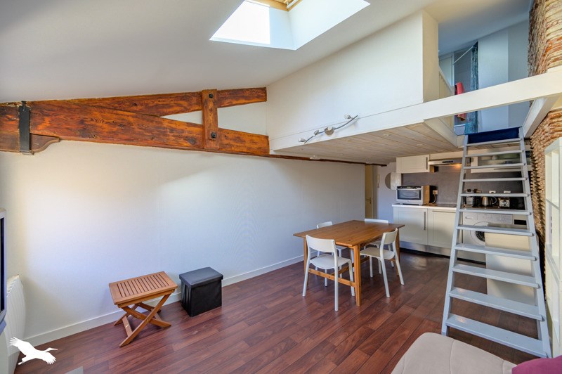 En plein centre ville, dans un immeuble de standing du 17e siècle, charmant duplex comprenant une pièce de vie avec cuisine américaine équipée, un espace nuit en mezzanine avec sa salle d'eau, et WC séparé.