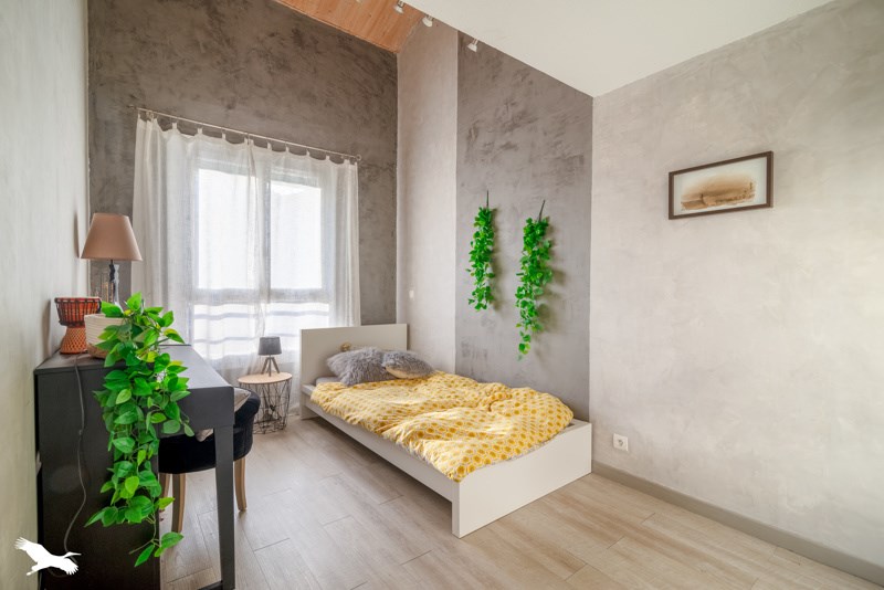 Trois chambres avec placards dont une au dernier étage avec bureau, faibles charges et deux parkings extérieurs.