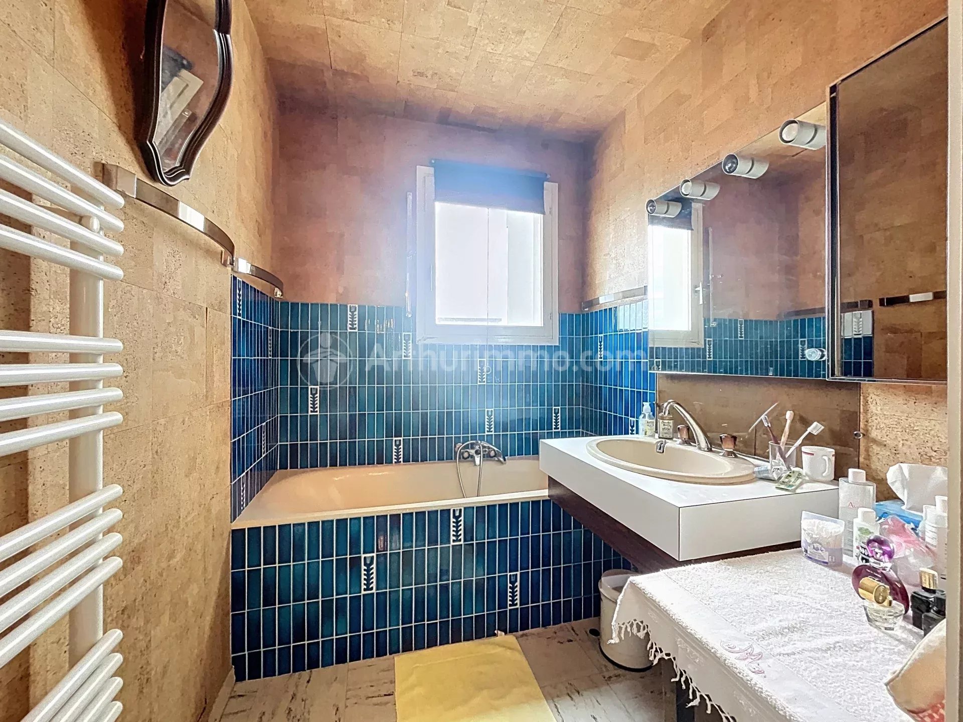 L'appartement est composé d'une entrée avec placards, un séjour double et une cuisine attenante donnant accès au balcon, quatre chambres, deux salles d'eau et WC indépendant.