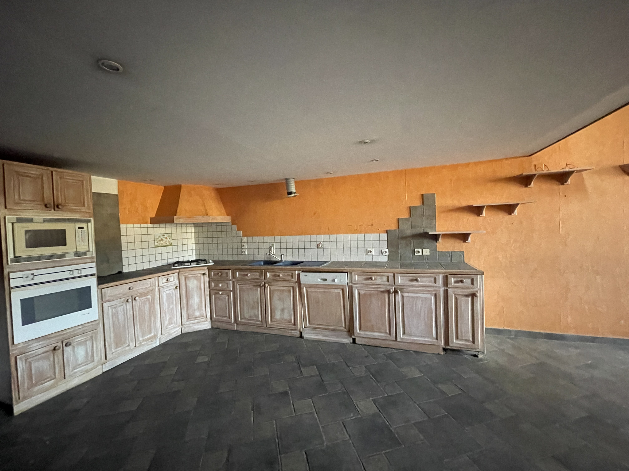 Le bien offre une cuisine ouverte sur une grande pièce de vie avec une cheminée d'époque en pierres blanches du GARD, une chambre en mezzanine, une salle d'eau et un WC restent à créer.