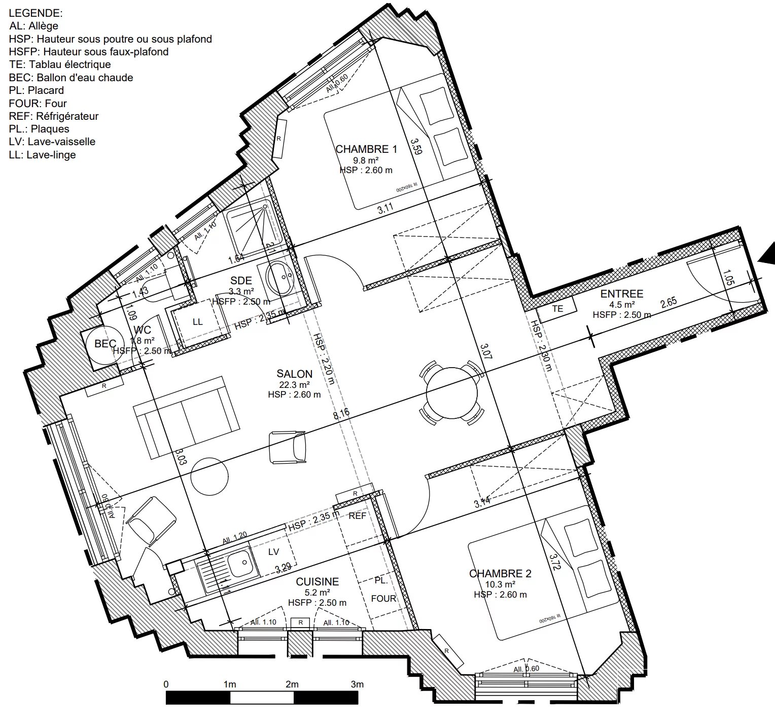 - d'une salle de bain de 3m2