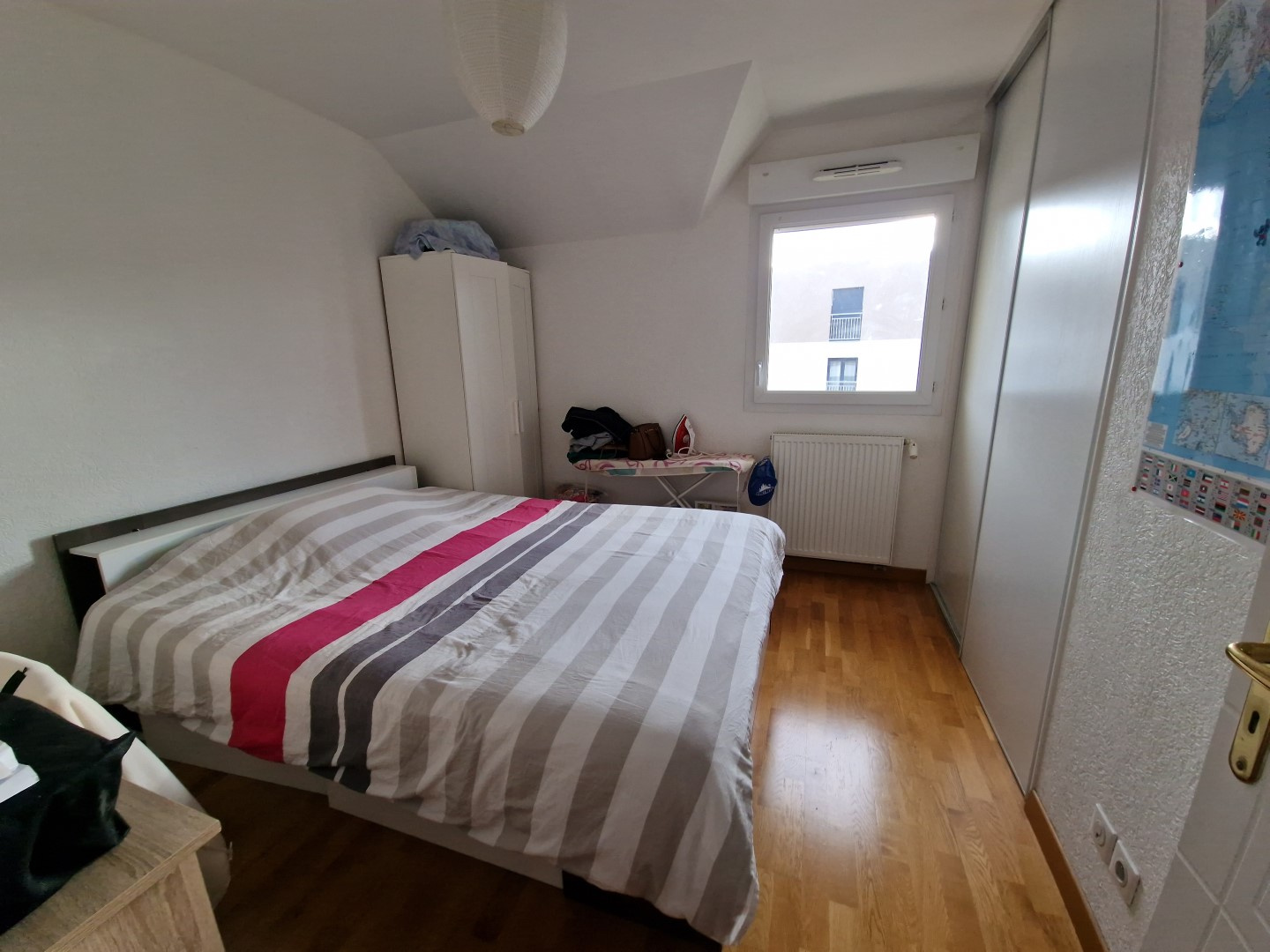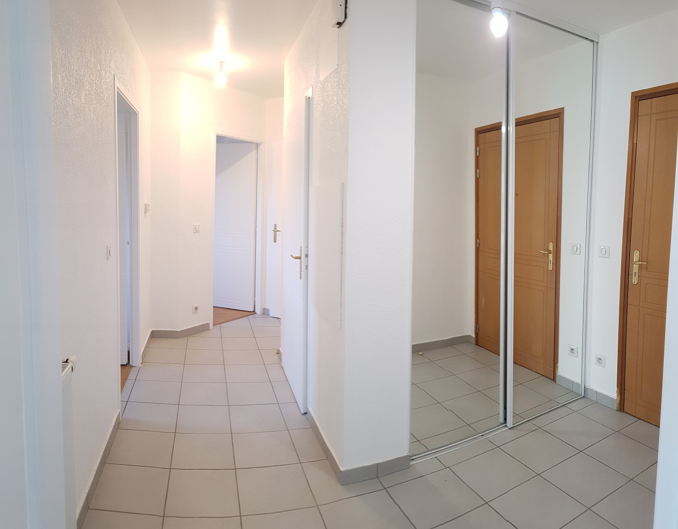 L'appartement se compose d'un couloir avec placard desservant deux espaces distincts :