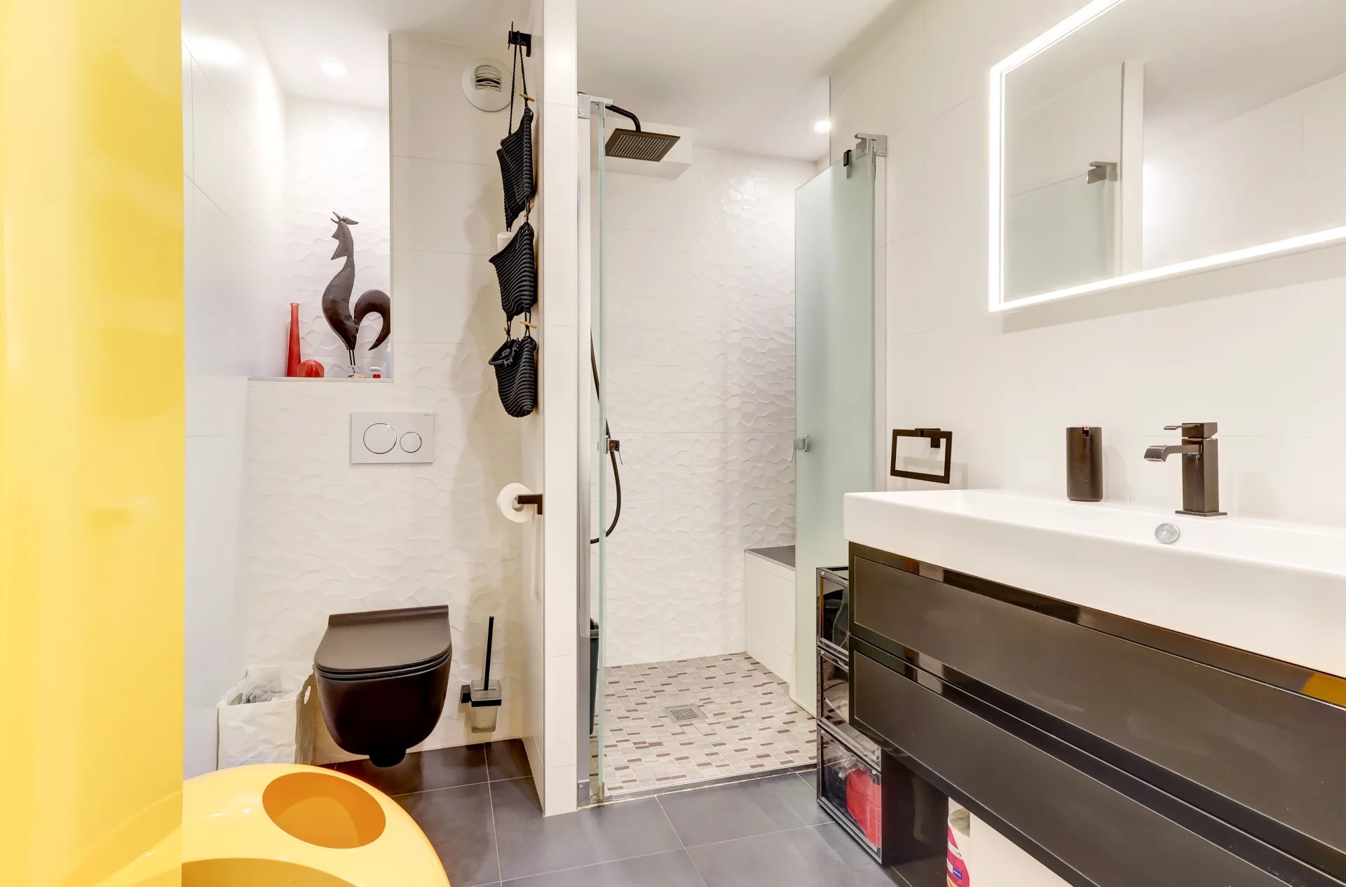 L'appartement au calme absolu, lumineux en exposition ouest avec sa vue dégagée, vous séduira par ses belles prestations : double vitrage, climatisation, rangements, matériaux de qualité…