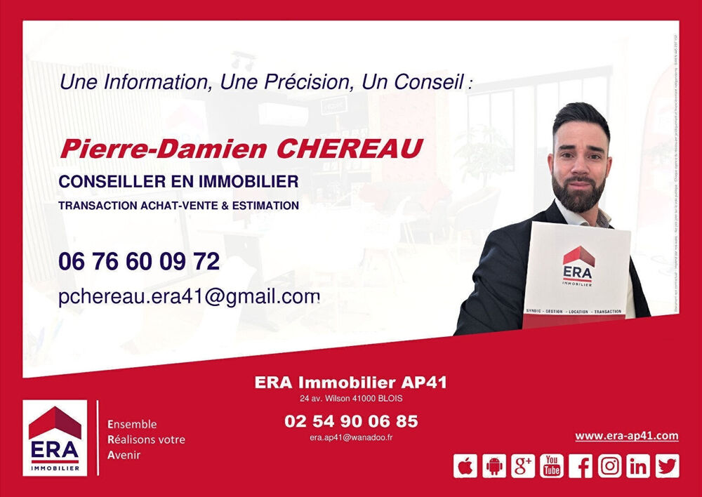 AUTRE INFORMATION : Contactez votre conseiller ERA Immobilier en transaction achat-vente pour le compte de l'agence immobilière ERA Immobilier AP41 de Blois, Pierre-Damien CHEREAU au : ou - Honoraires charge VENDEUR.