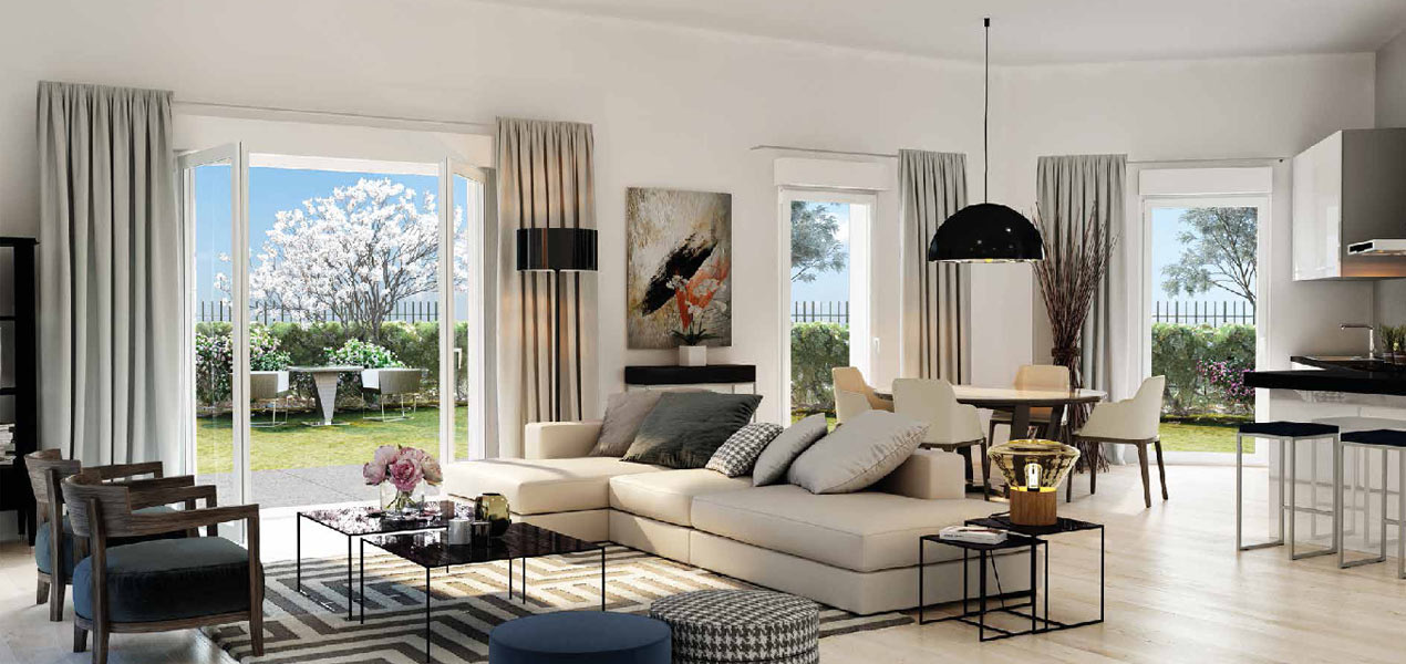 Pièce de vie spacieuse et lumineuse donnant sur le jardin