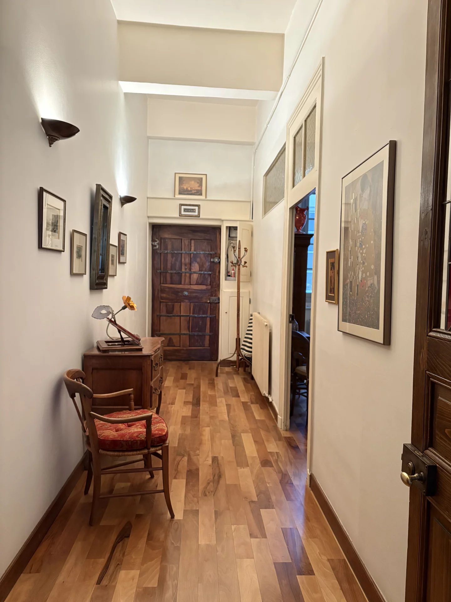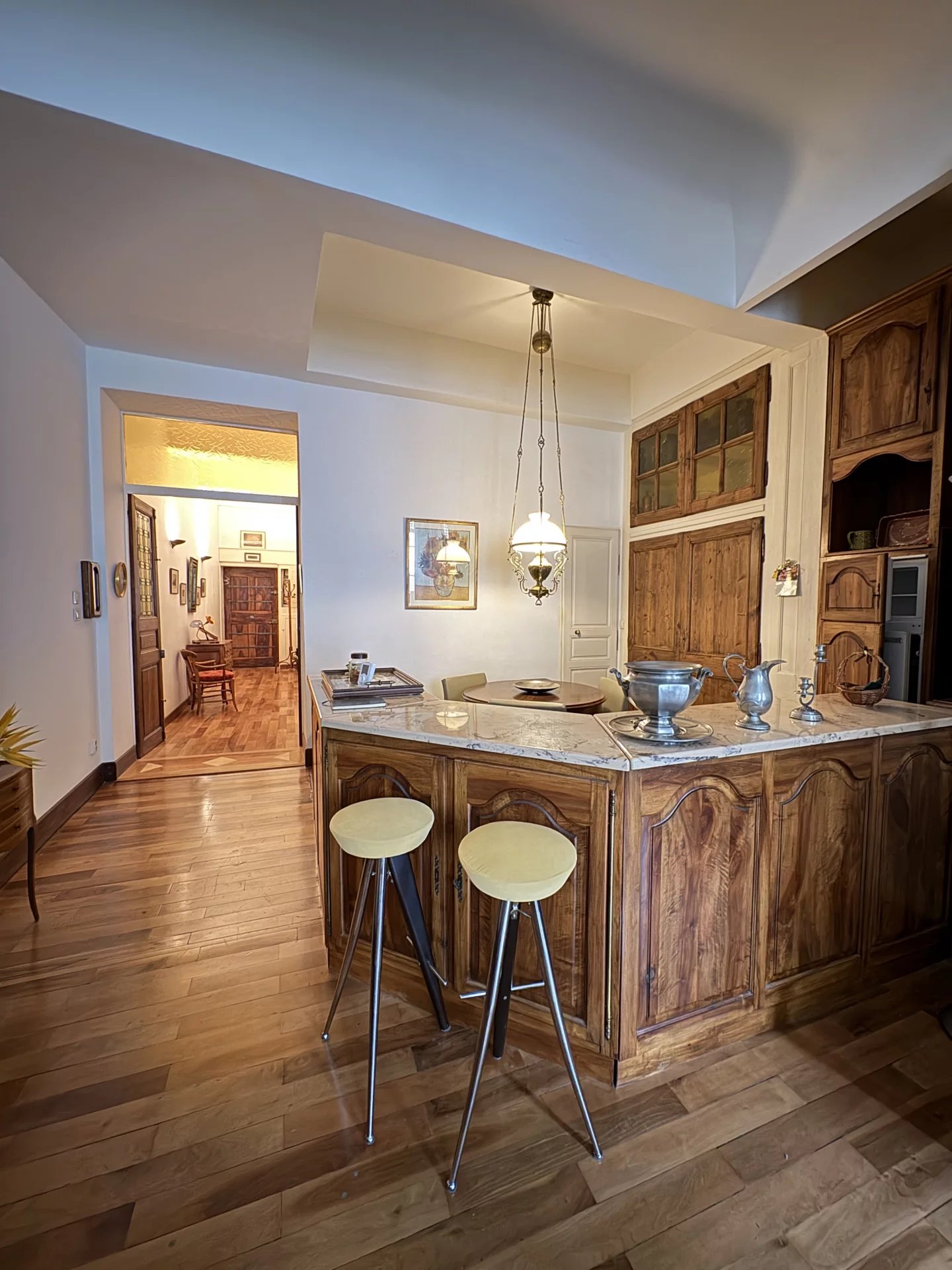 Appartement de très bonne facture, situé dans une copropriété sécurisée, au deuxième étage sans ascenseur, offrant le charme de l'ancien avec belle hauteur de plafonds, beaux volumes ,et nombreux rangements.L'appartement est composé d'une entrée (portes avec vitraux),d' un grand et beau salon avec cuisine US équipée, cheminée en marbre, magnifiques parquets (plusieurs essences), d' une chambre communiquant avec la salle de bain , toilettes avec coin buanderie, cellier et galetas.
