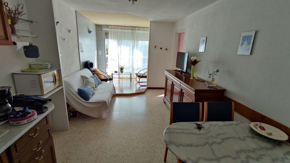 LE CAP D'AGDE: Situé proche plage du Môle et commerces de la flânerie, appartement 1er étage type 2 pièces ( Surface 34.59 au sol ) , S/eau avec wc, coin cuisine, séjour, Loggia. vitrée PARKING sécurisé. Charges de copropriété 720€/an, Copropriété de 128 lots. ( Prix incluant les honoraires charge vendeur). Energie : C/148 - GES A/5.