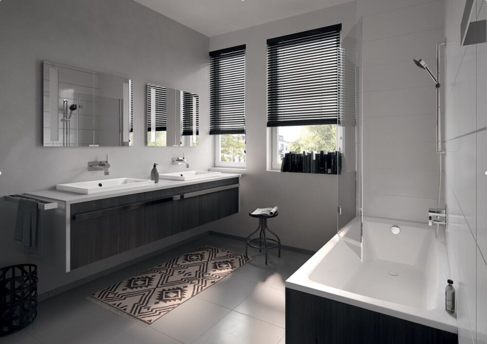 - salle de bain équipée : d'une baignoire, d'un meuble vasque, d'une fenêtre et d'un radiateur sèche-serviettes