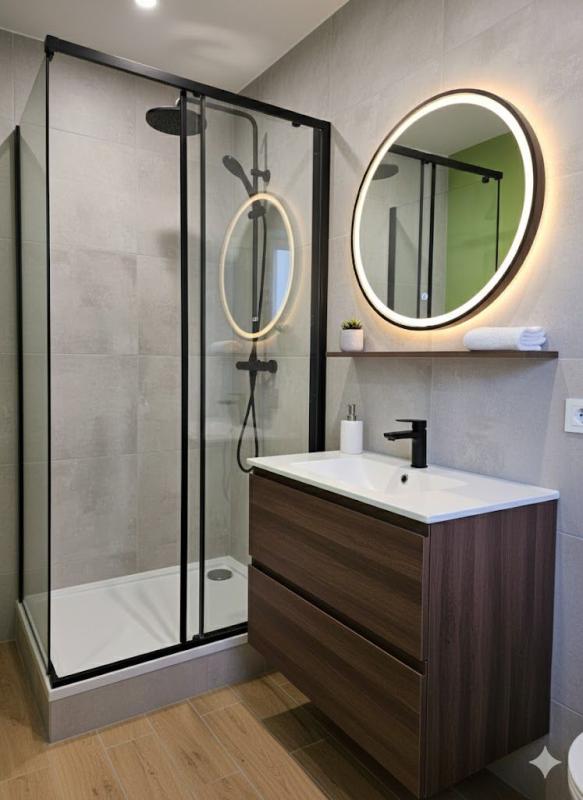 Côté nuit : Une chambre généreuse et une salle de bains fonctionnelle.